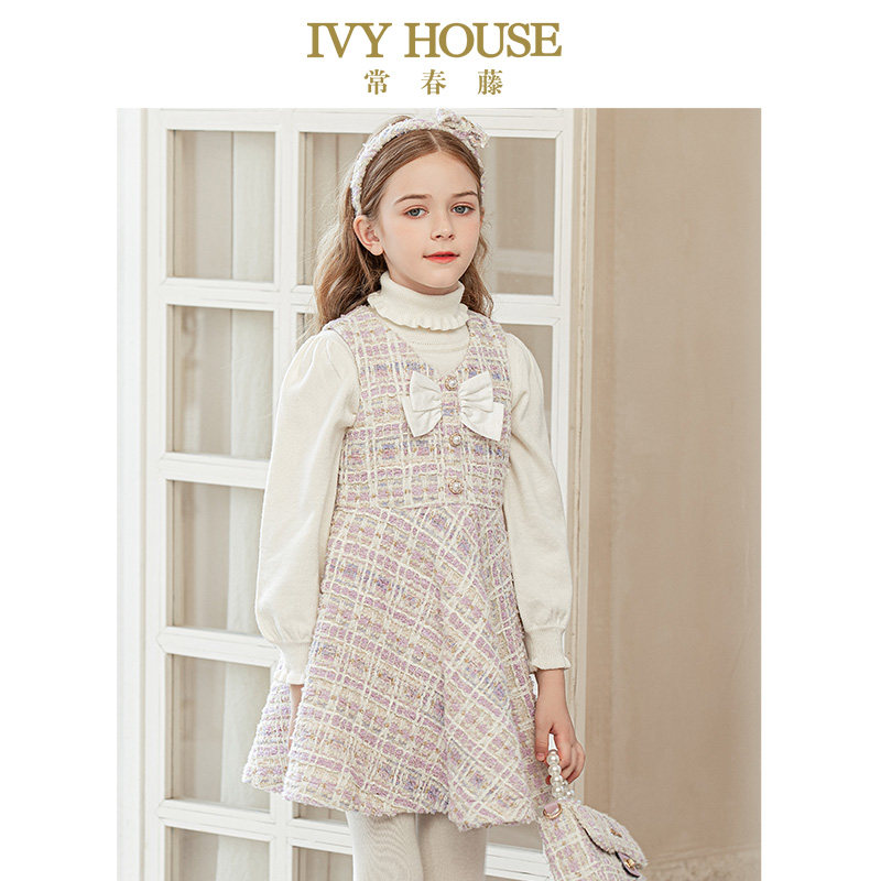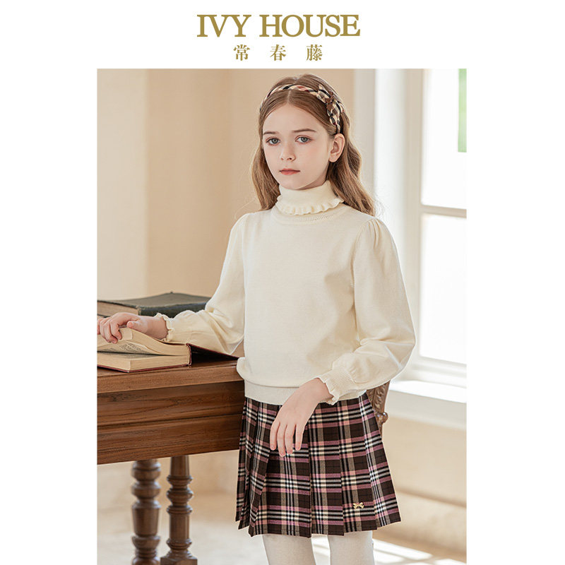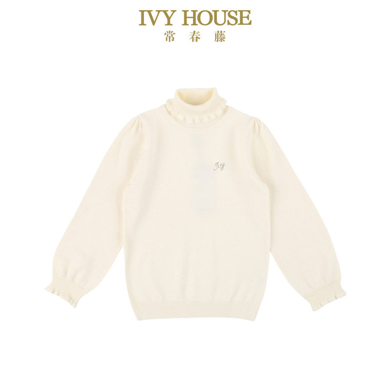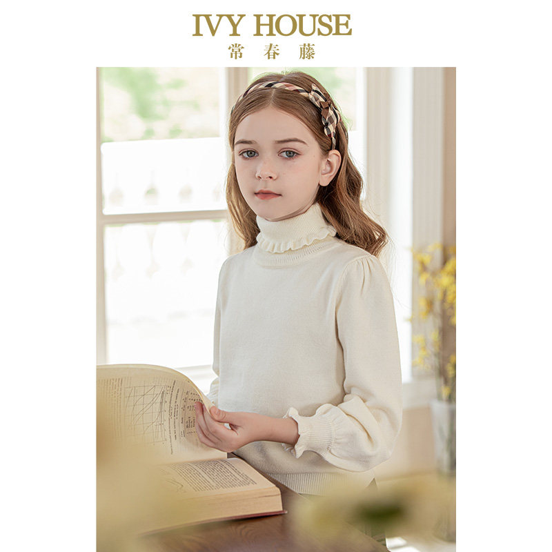 IVY HOUSE常春藤童装女童打底衫冬季 花边双翻高领毛衣甜美亲子装