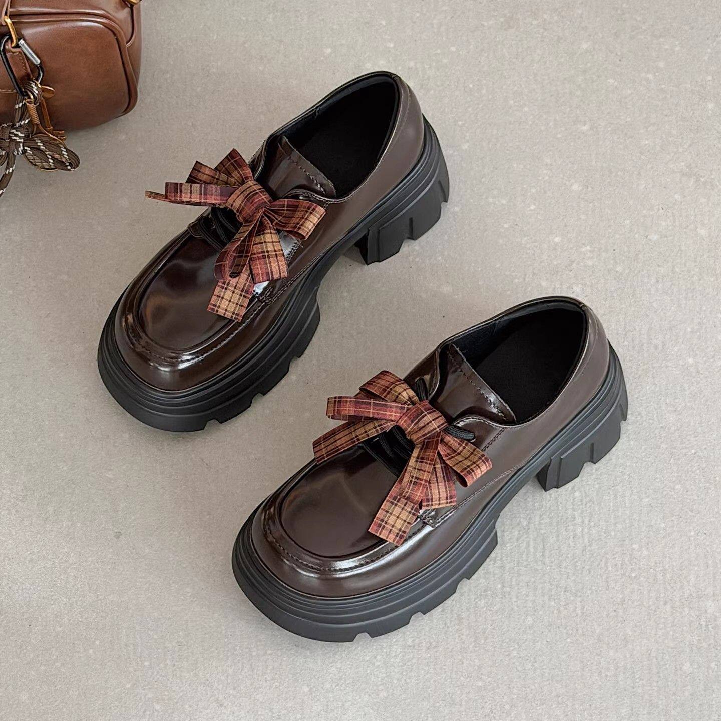 单鞋刘雯同款真皮厚底松糕鞋漆皮系带小皮鞋厚底乐福鞋女2026新款