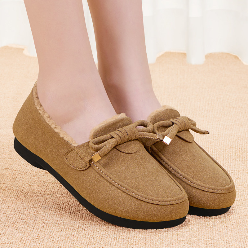 秋冬季新款豆豆鞋女加绒保暖休闲鞋平底懒人鞋毛毛鞋一脚蹬女棉鞋