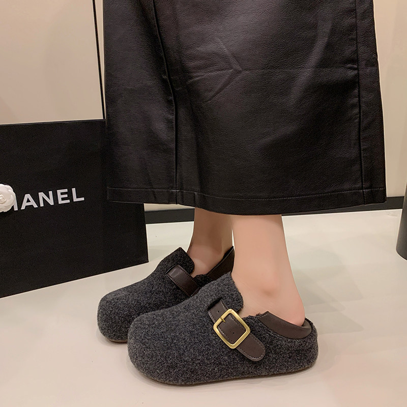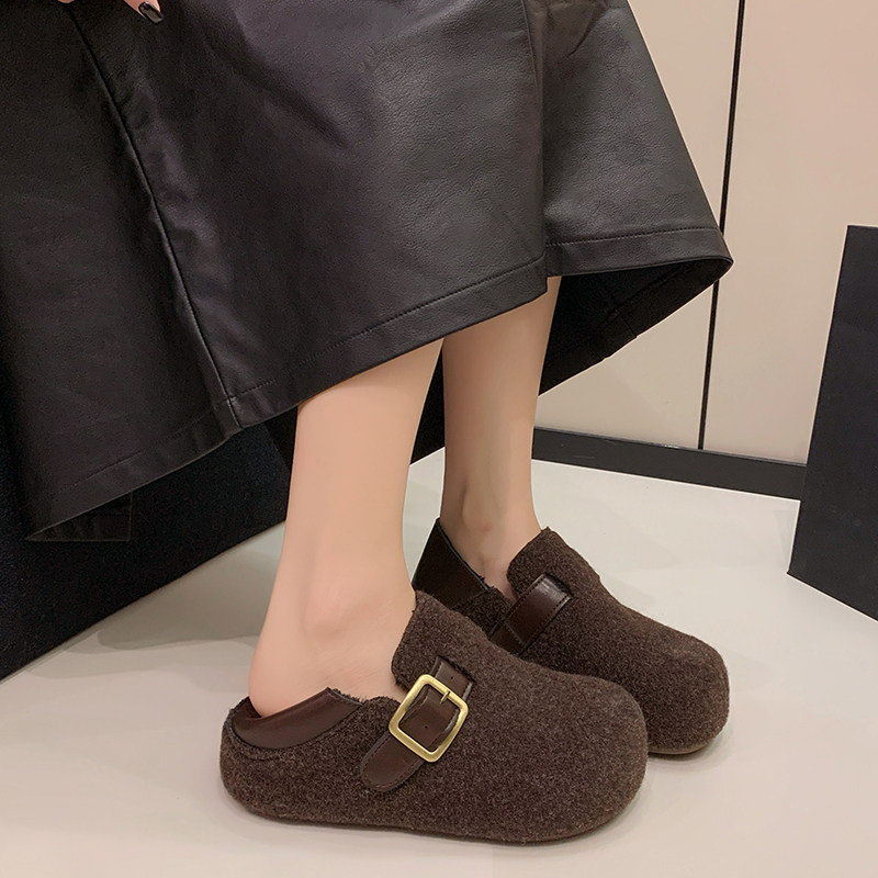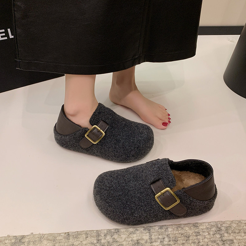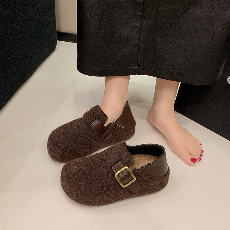 TATAFOCUS~加绒毛毛鞋韩版圆头皮带扣2025冬季新款勃肯鞋女35-28