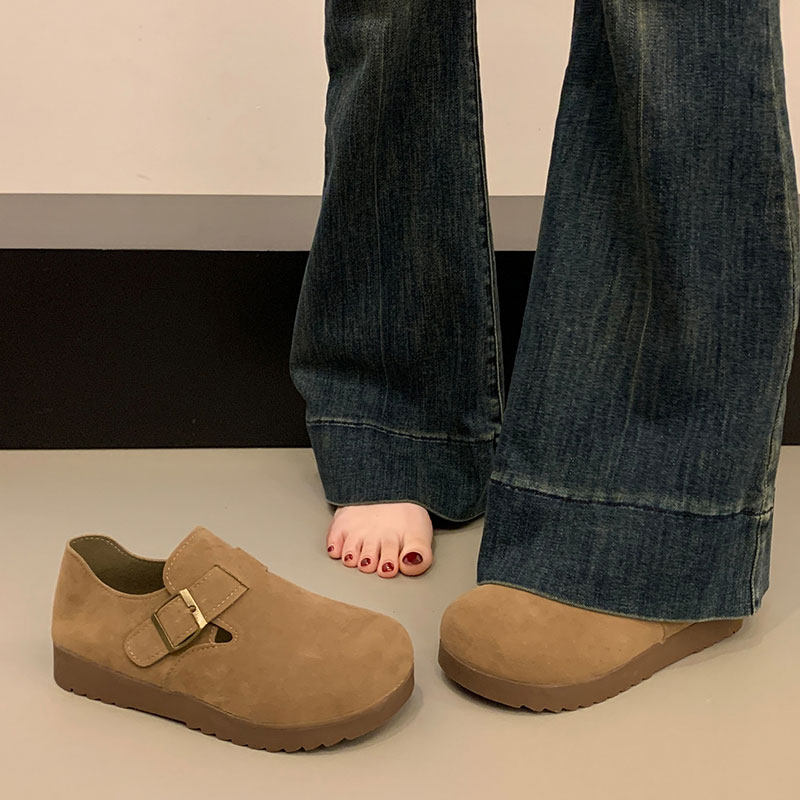 加绒勃肯鞋女2025秋冬新款复古厚底豆豆棉鞋一脚蹬孕妇全包博肯鞋