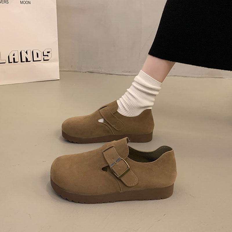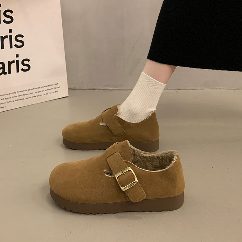 TATAFOCUS~加绒毛毛鞋韩版圆头皮带扣2025冬季新款勃肯鞋女35-28