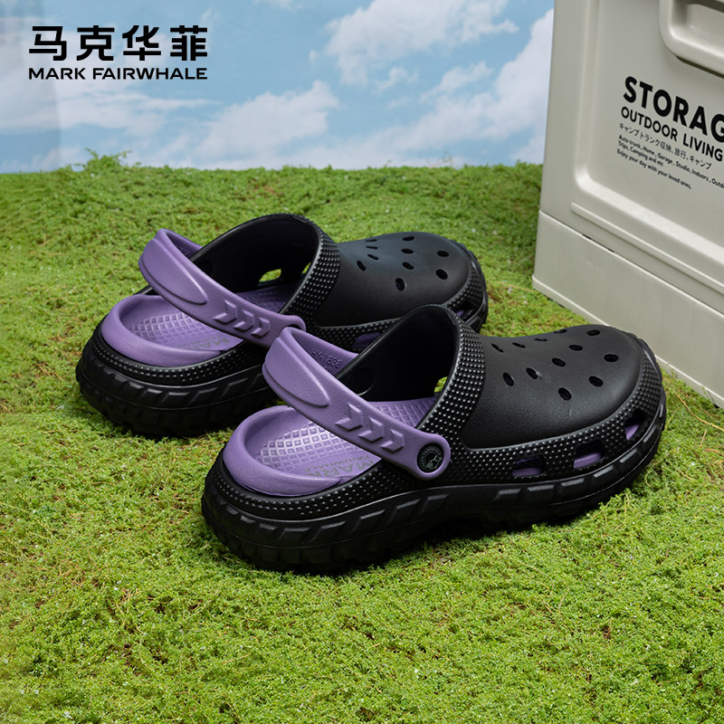 马克华菲拖鞋男外穿男生洞洞鞋包头半拖鞋男款沙滩鞋两用开车凉鞋