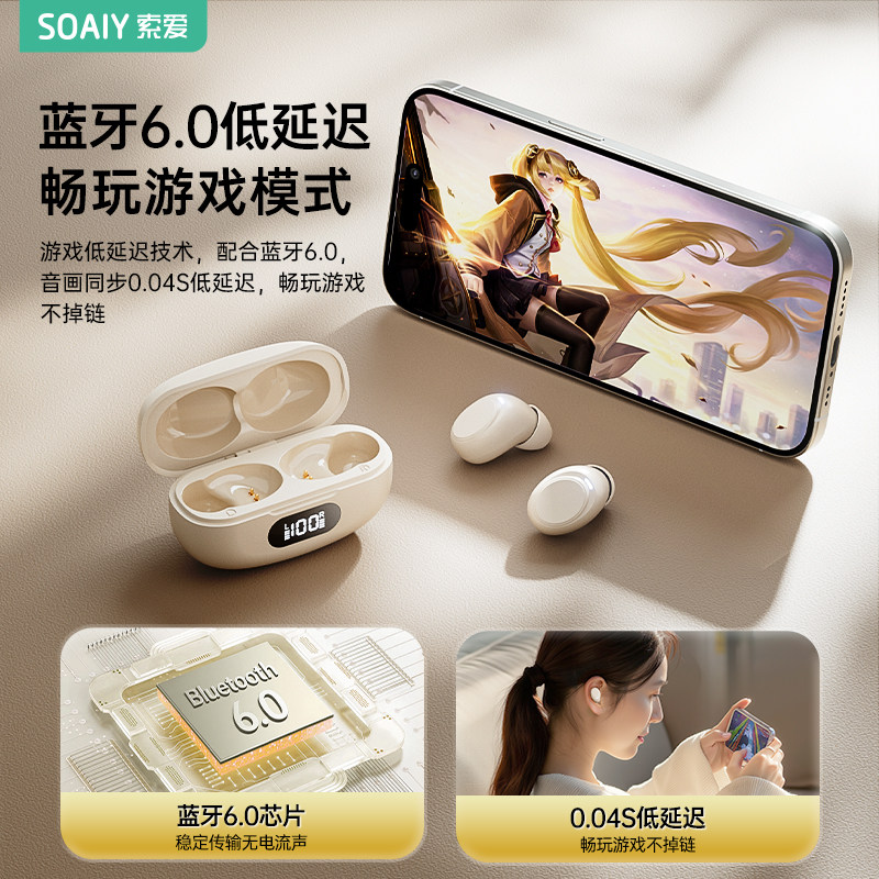 索爱SL6蓝牙耳机无线半入耳式运动2025新款超长续航官方正品女生