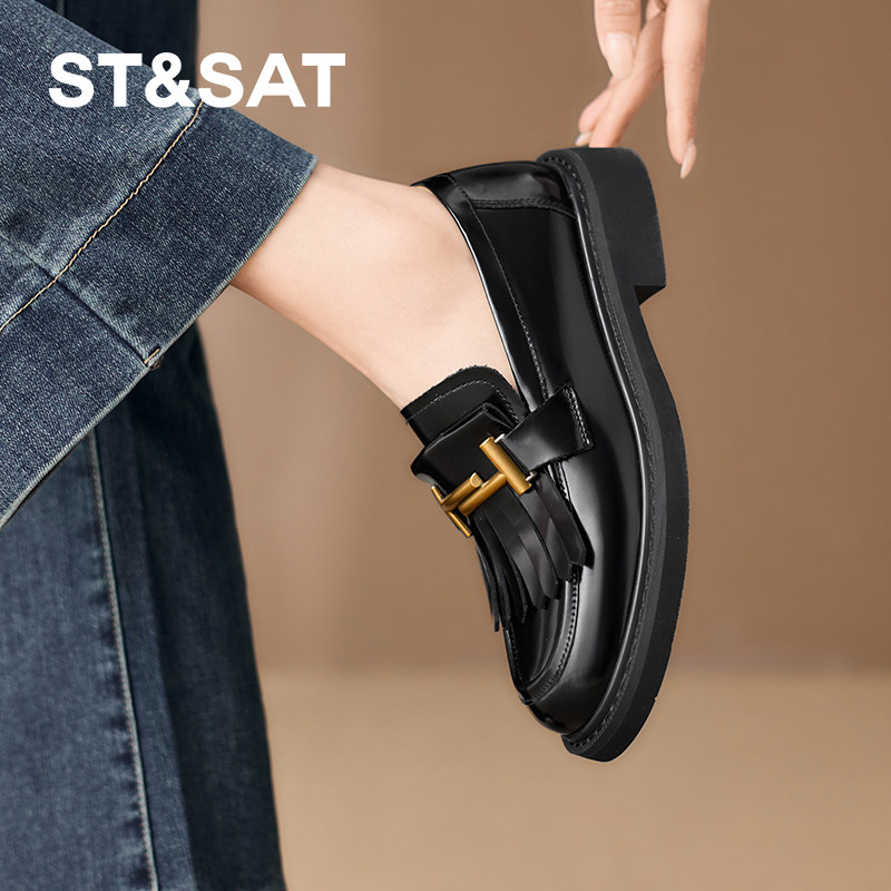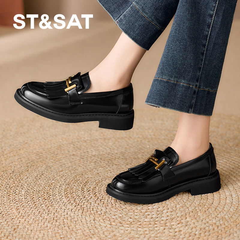 【头层牛皮真皮】星期六双T流苏乐福鞋女2026春季男朋友风豆豆鞋
