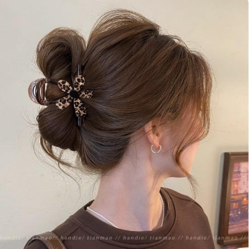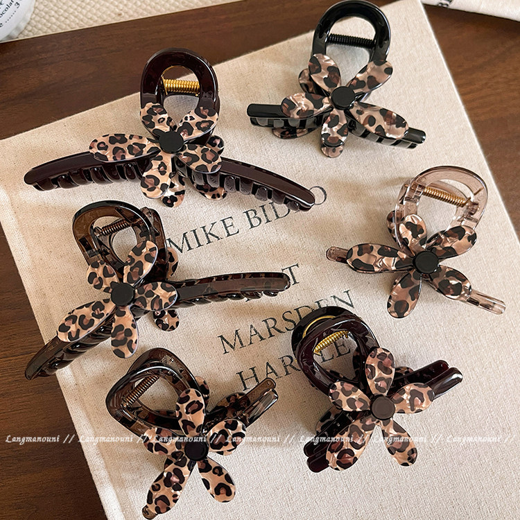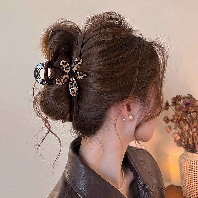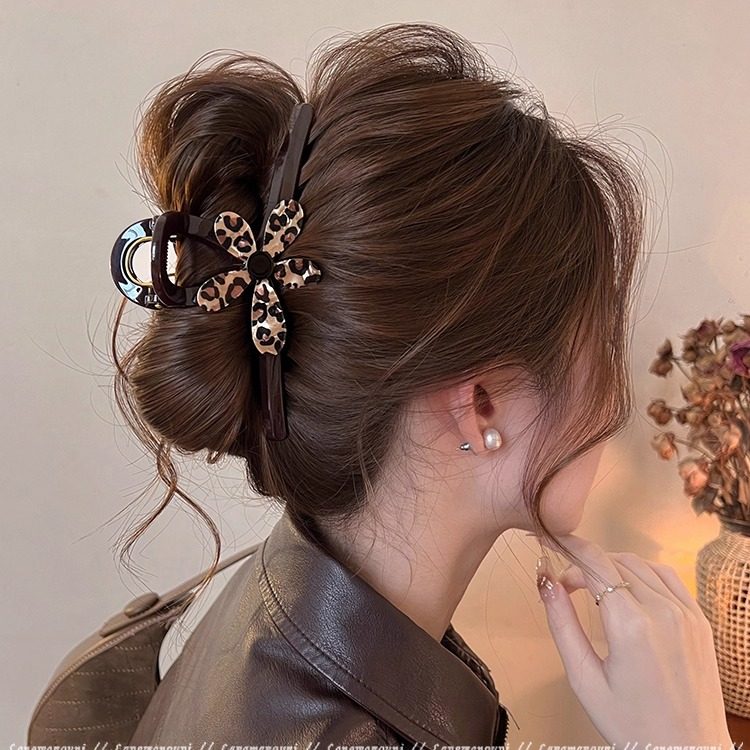 气质豹纹花朵发夹抓夹女后脑勺2025新高级感盘发大号发量大鲨鱼夹