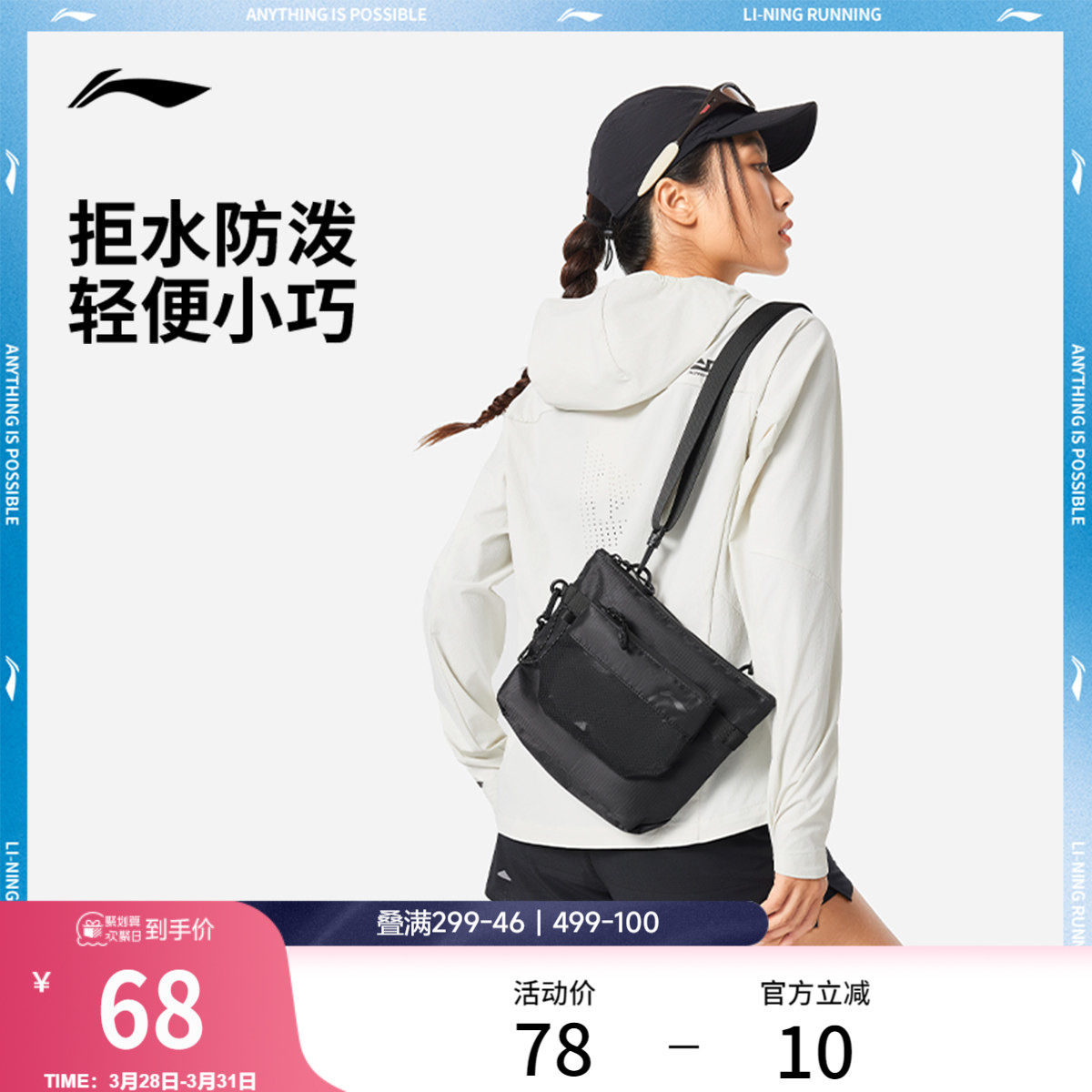李宁斜挎包男包女包2026新款官方正品跑步健身便携防泼反光运动包