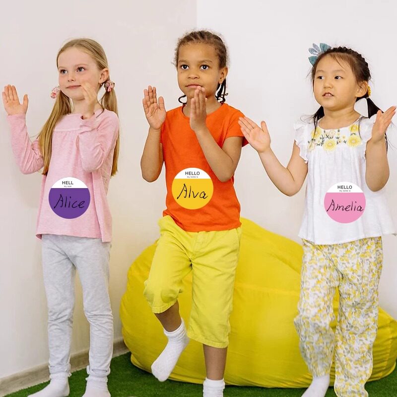 大号彩色圆点贴不干胶标签纸圆形贴纸圆圈红色即时贴幼儿园新生一年级可手写姓名贴爱心名字胸贴自粘儿童定制