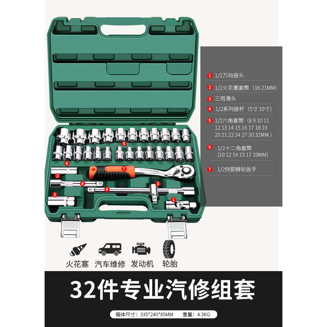 绿林37件套筒扳手工具套装大全汽修工具大全汽车维修修理汽保