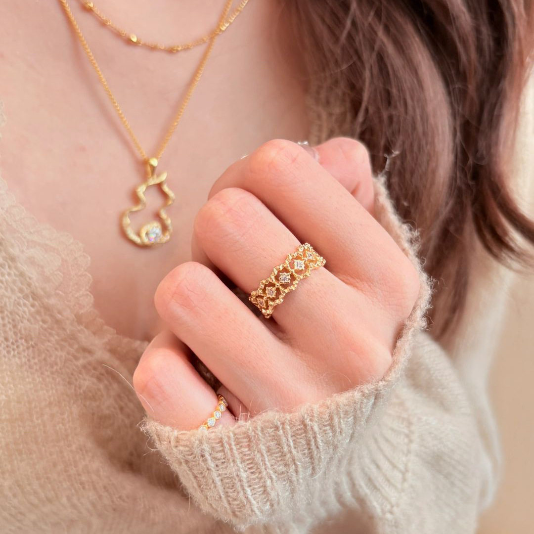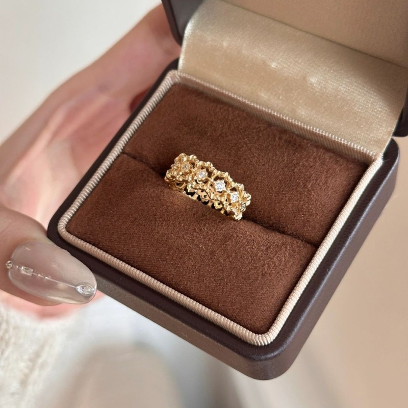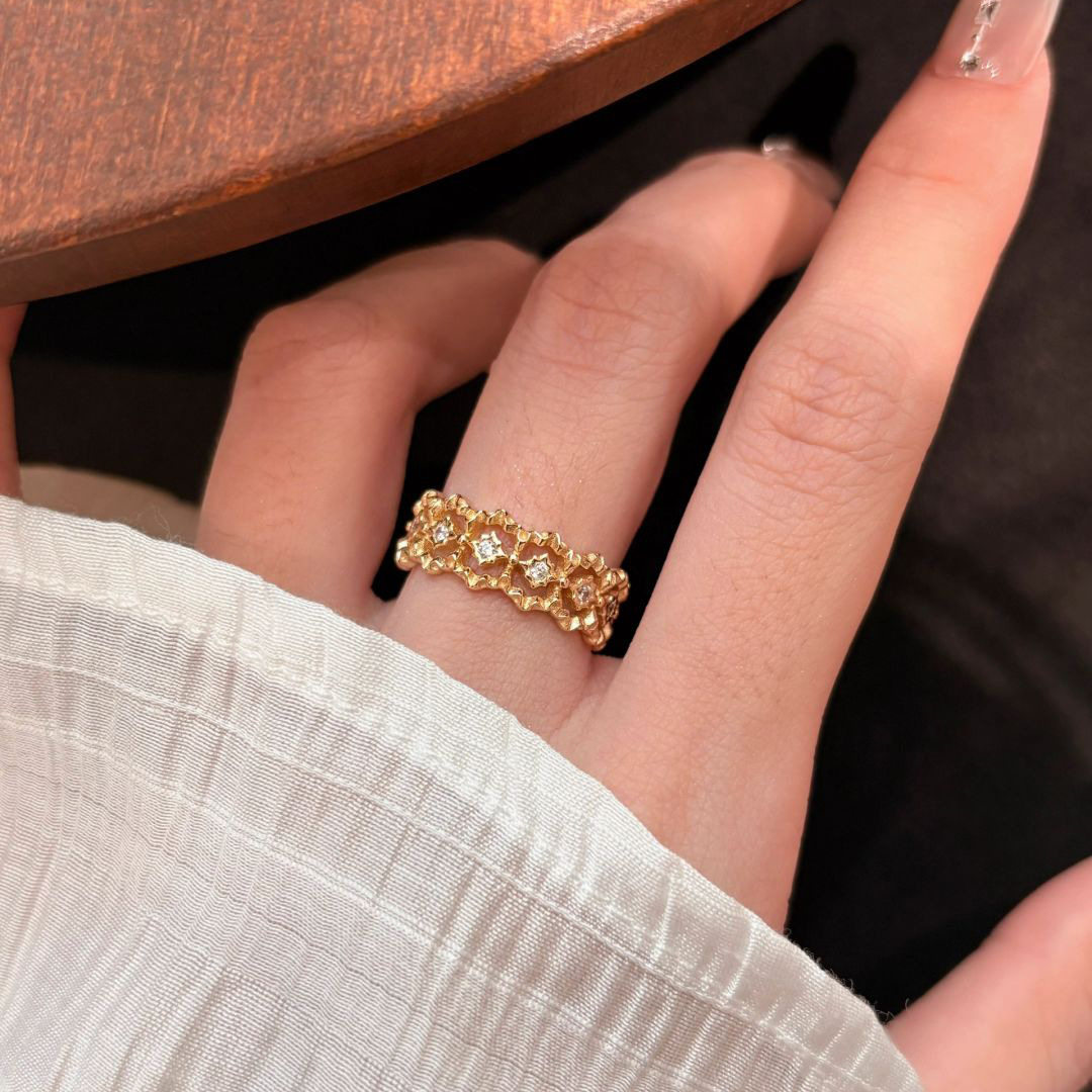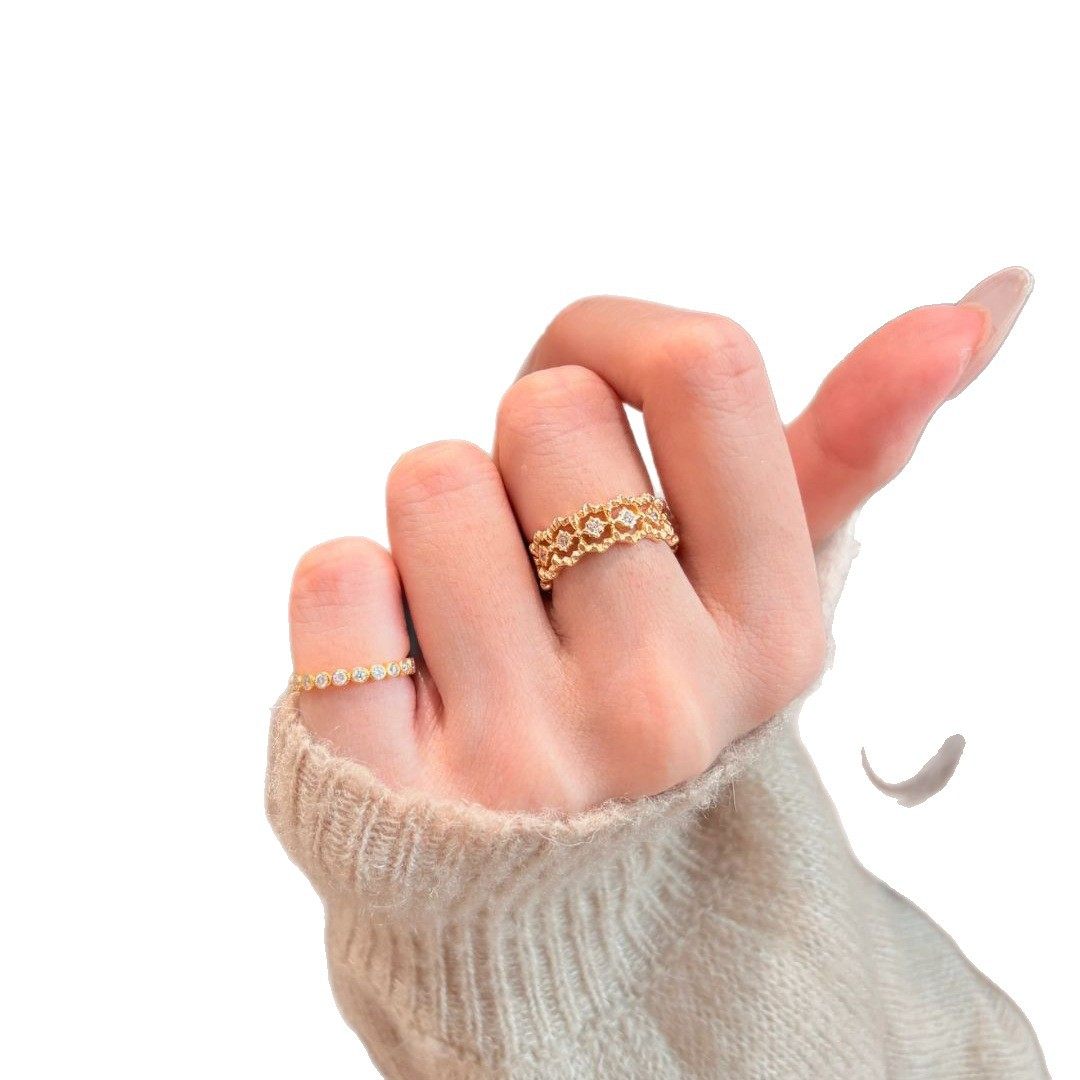 法式中古蕾丝花边镂空网状戒指女小众时尚轻奢镶嵌锆石高级感手饰