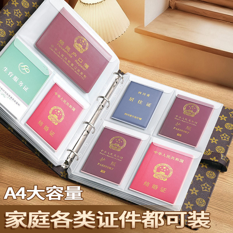 加厚皮面家庭证件收纳包资料活页a4b5多功能收纳册家用实用型房本证书票据疫苗本和出生证保护套大容量卡包册
