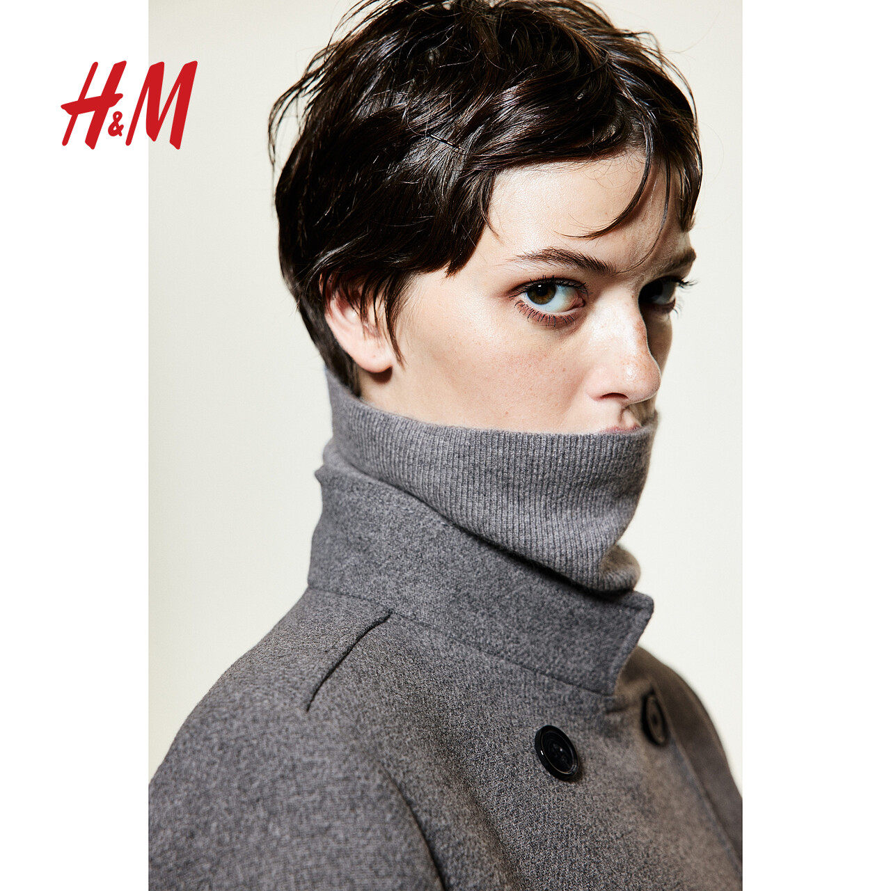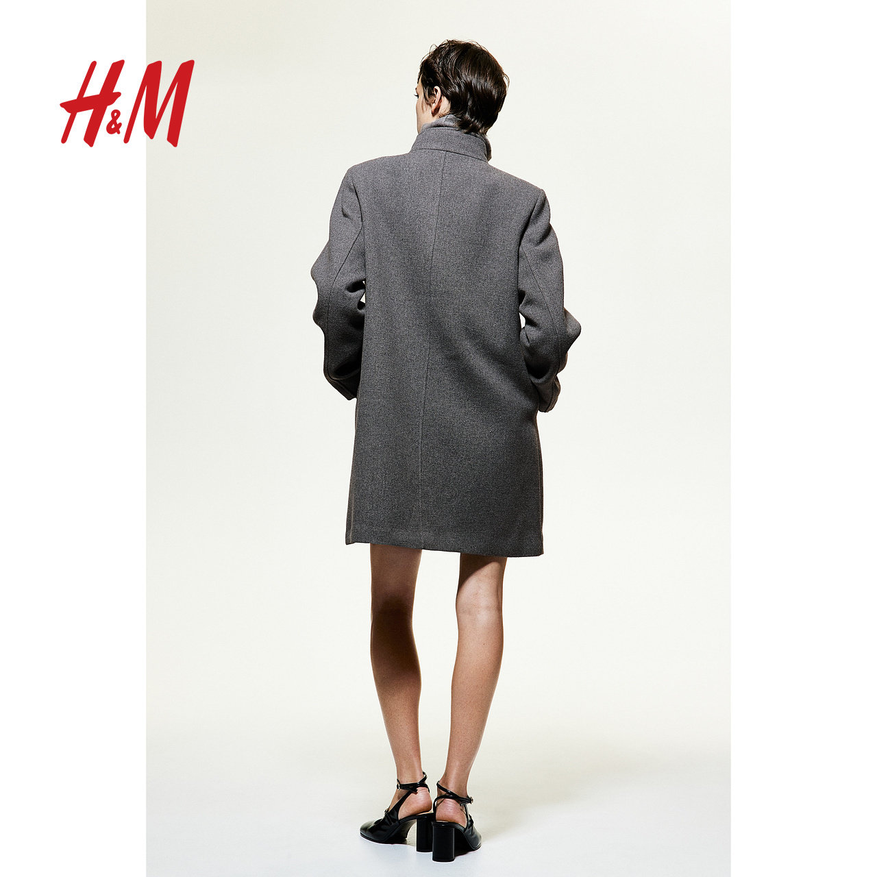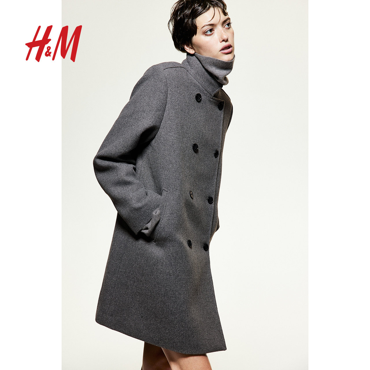 HM女装毛呢外套冬季双排扣气质加厚冬季保暖大衣1241735