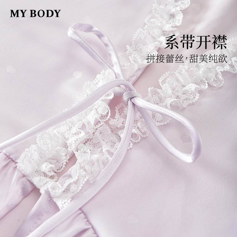 商场同款MYBODY新款家居服女爱心提花纯欲性感两件套蕾丝吊带睡裙