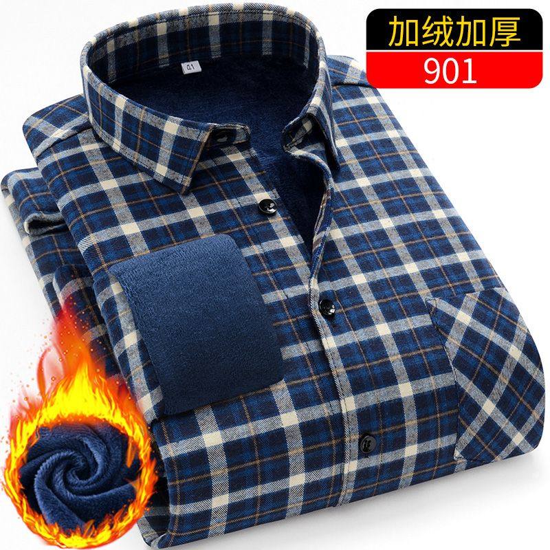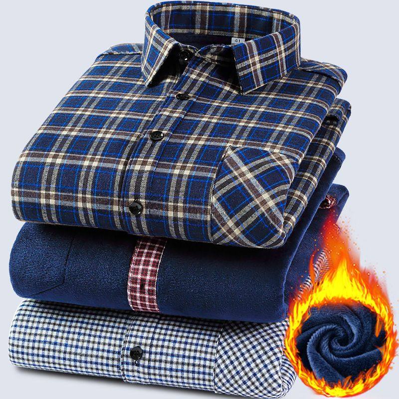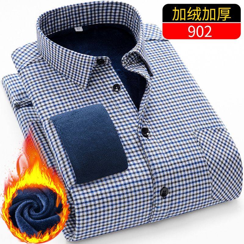 冬季男士纯棉加厚衬衫夹棉保暖棉衬衣中老年加棉舒适爸爸寸衫棉袄
