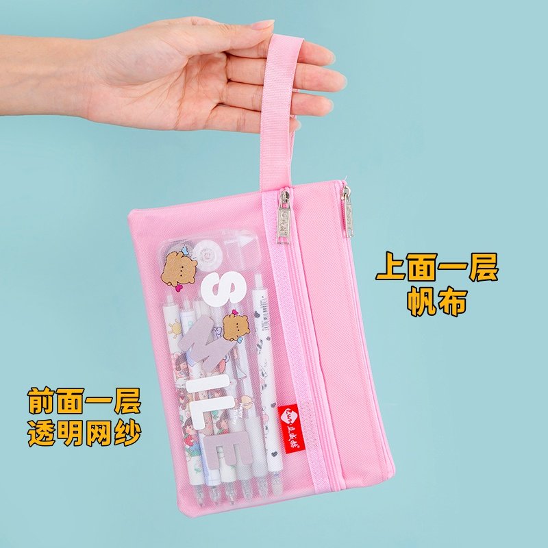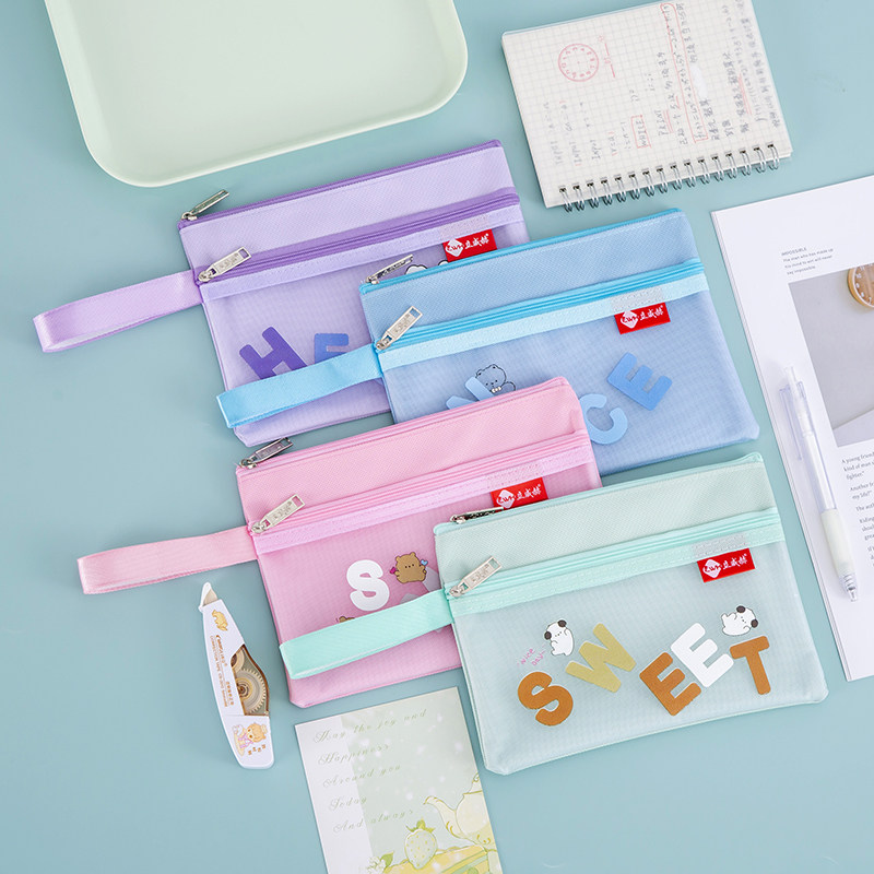 网格文件袋加厚透明网格拉链袋A4试卷收纳袋学生用考试文具袋防水笔袋办公用品批发公文档案袋资料袋包邮