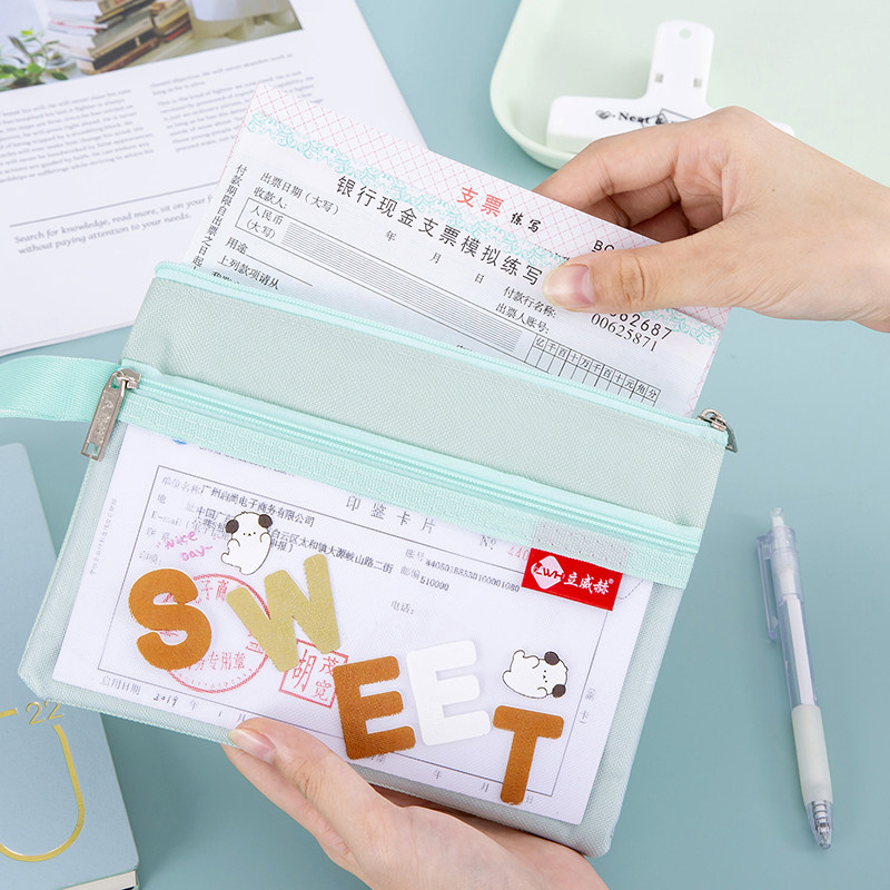 A6卡通双层手提袋户口本存折资料袋护照收纳包银行卡身份证零钱袋