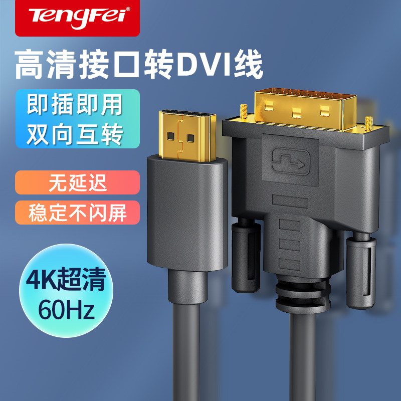 腾飞 dvi转hdmi4K转接线互转带音频笔记本电脑显示器转换高清投屏
