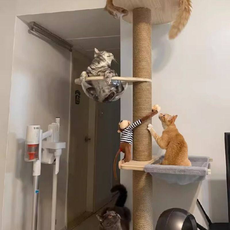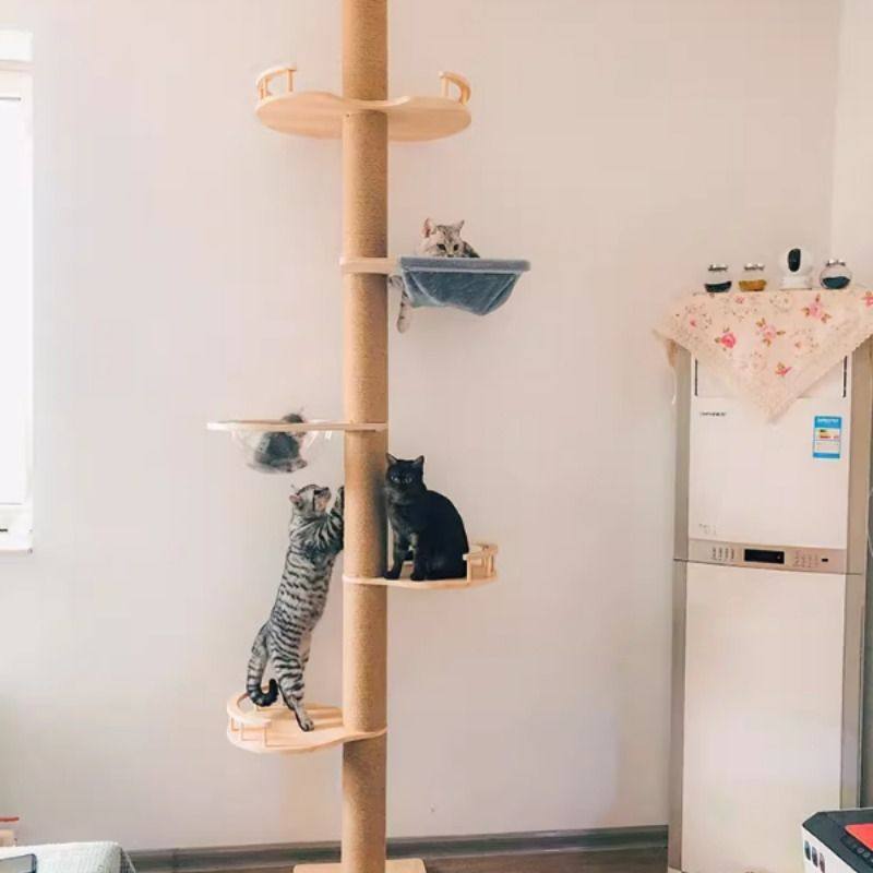 通天柱猫爬架不占地猫窝猫树一体猫抓柱顶天立地猫架猫屋麻绳实木