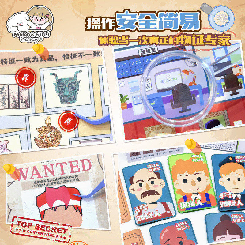 inamazy超级大侦探贴纸本探索本幼儿园益智玩具锻炼观察力逻辑推理本桌游卡牌游戏儿童DIY创意粘贴玩具安静书