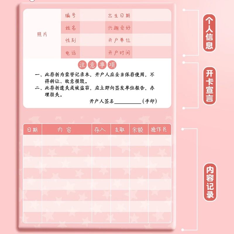 集赞积分存折奖励积分卡家庭版阅读存折印章收集本幼儿园贴纸登记册卡通小星星儿童学习记录小学生本开学兑换