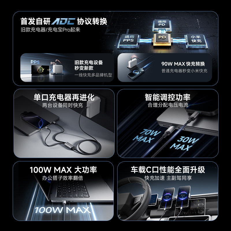 CUKTECH酷态科10号超级电能线一拖二线PD快充双typec适用于苹果16pro/30W/100W小米15三星安卓17充电线