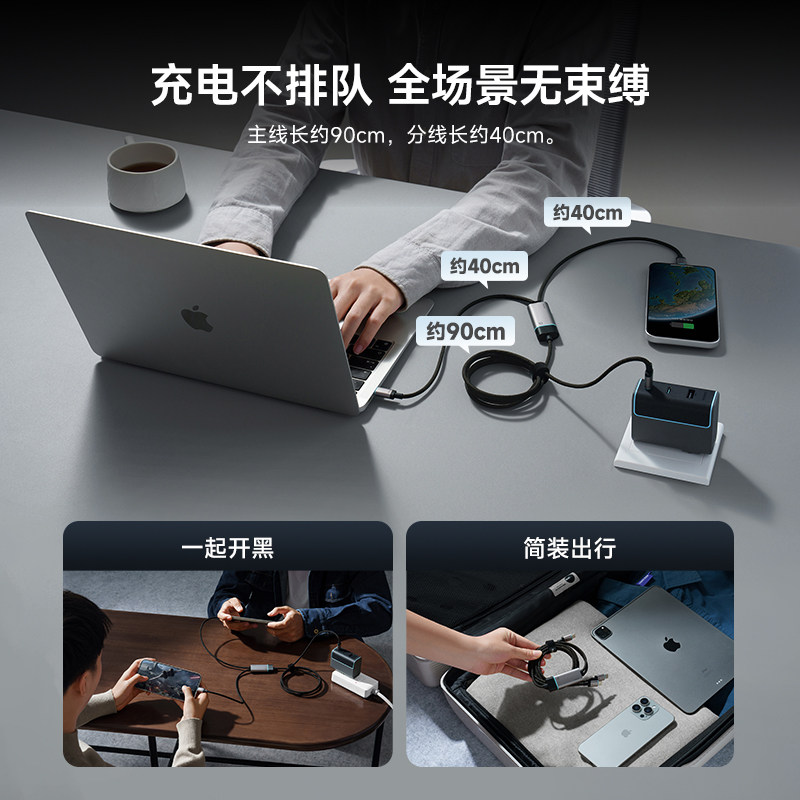 品胜星合三合一充电器线适用苹果17华为手表iwatch无线充Type-C数据线100W一拖三多功能66W超级快充平板车载