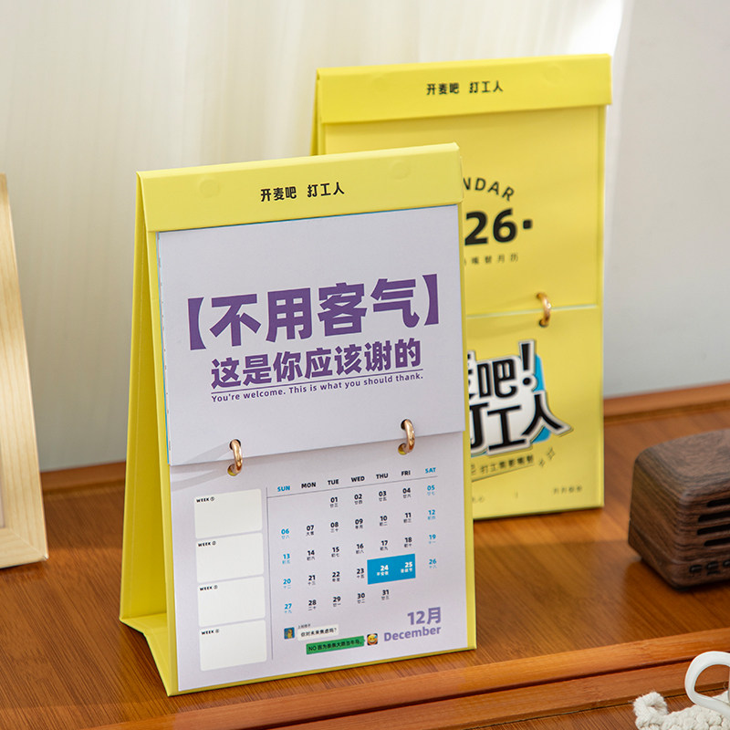 三年二班 青禾纪2026开麦吧打工人职场嘴替月历高级感趣味解压互动打卡计划多功能台历日历办公室桌面摆件