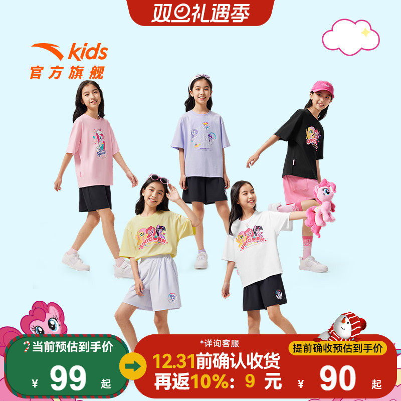 小马宝莉IP联名安踏儿童女童短袖T恤衫2025夏季新款大童纯棉上衣
