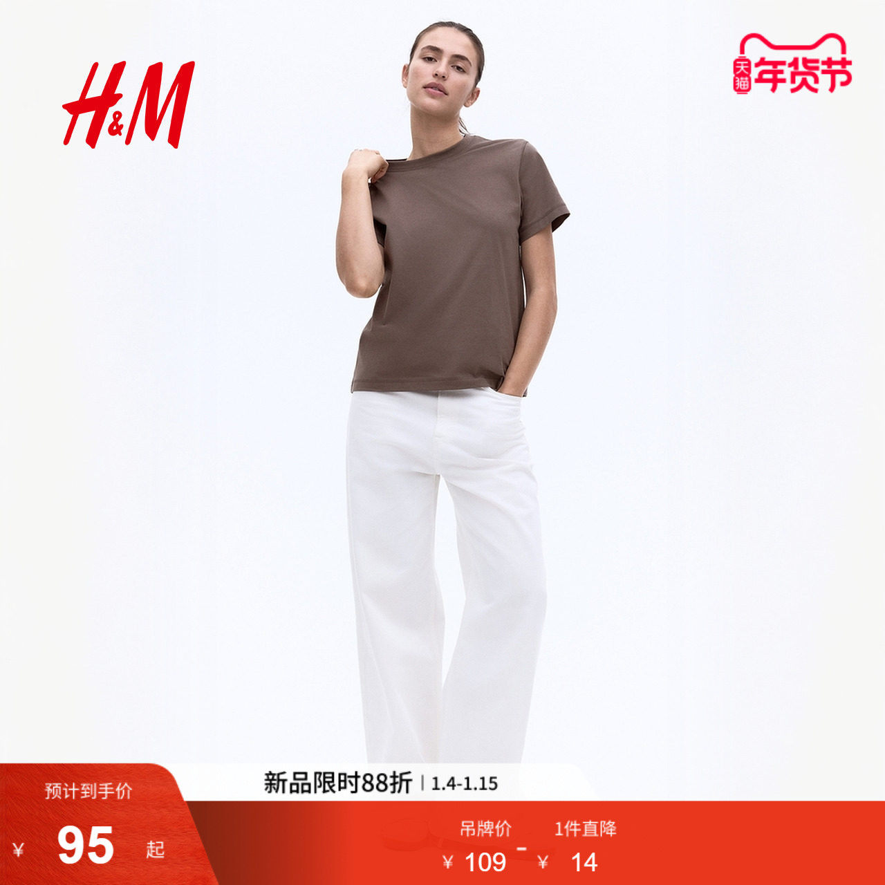 HM女装T恤冬季休闲舒适大廓形棉质T恤1290372