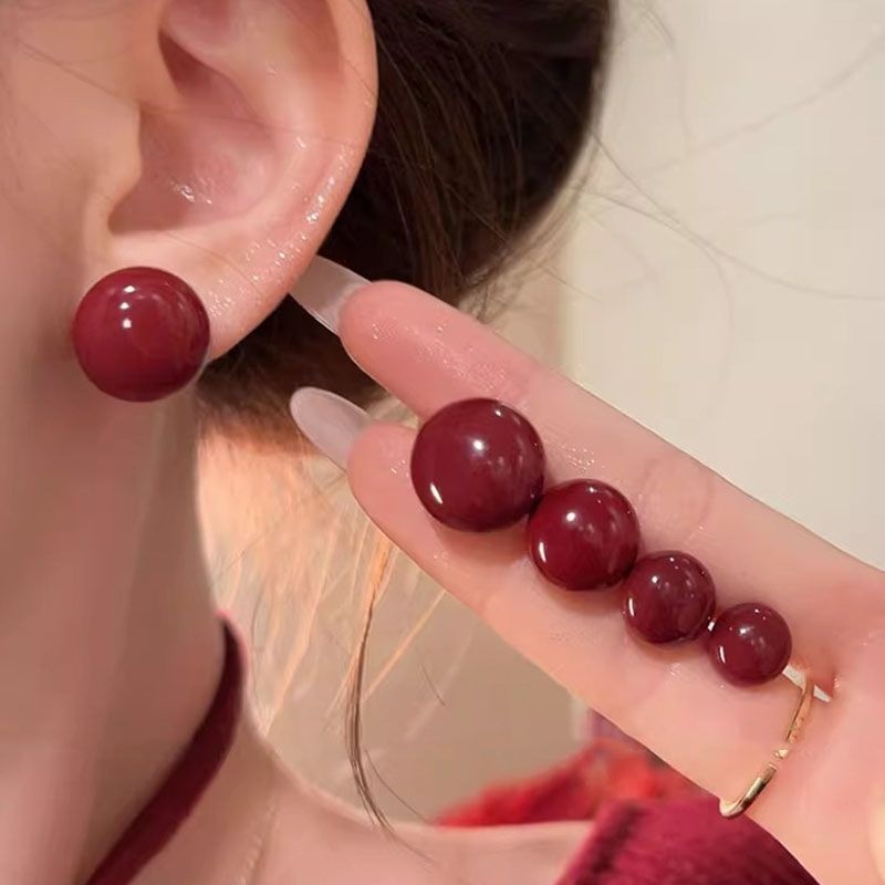 安可拉红扁圆超仙耳钉女复古港风气质高级感耳环轻奢养耳洞红耳饰