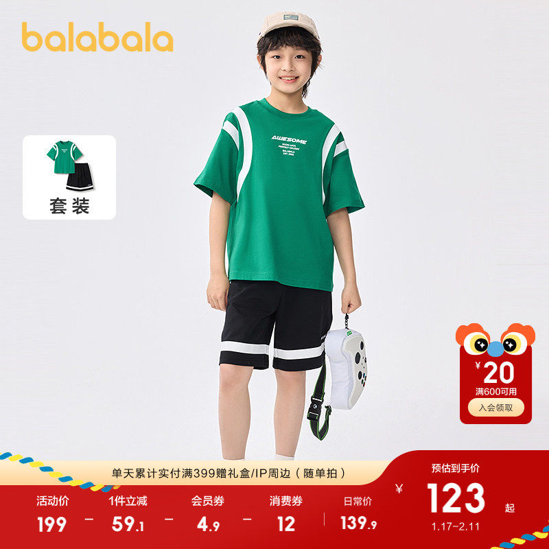 巴拉巴拉儿童短袖套装2025新款童装夏季男大童两件套速干休闲运动