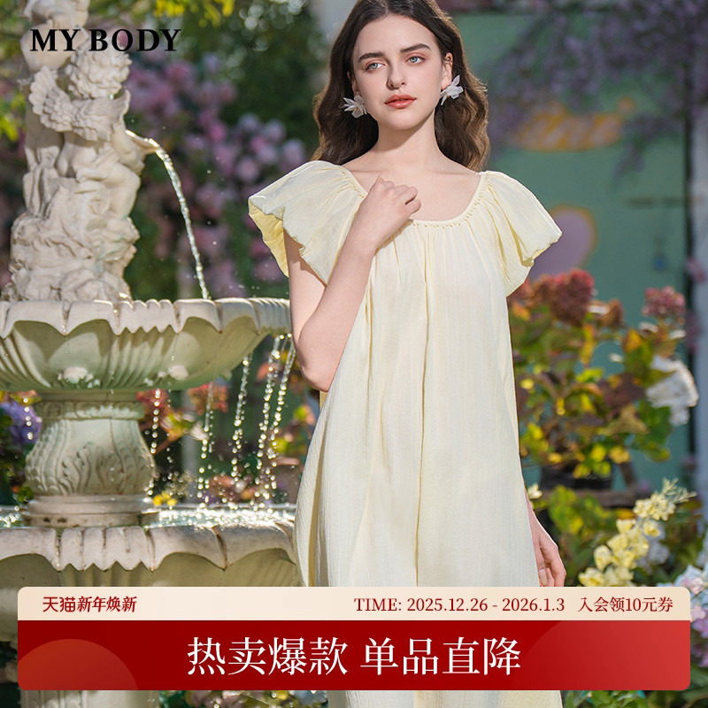 商场同款MYBODY睡裙纯棉天然棉法式可外穿宽松舒适短袖睡衣家居服