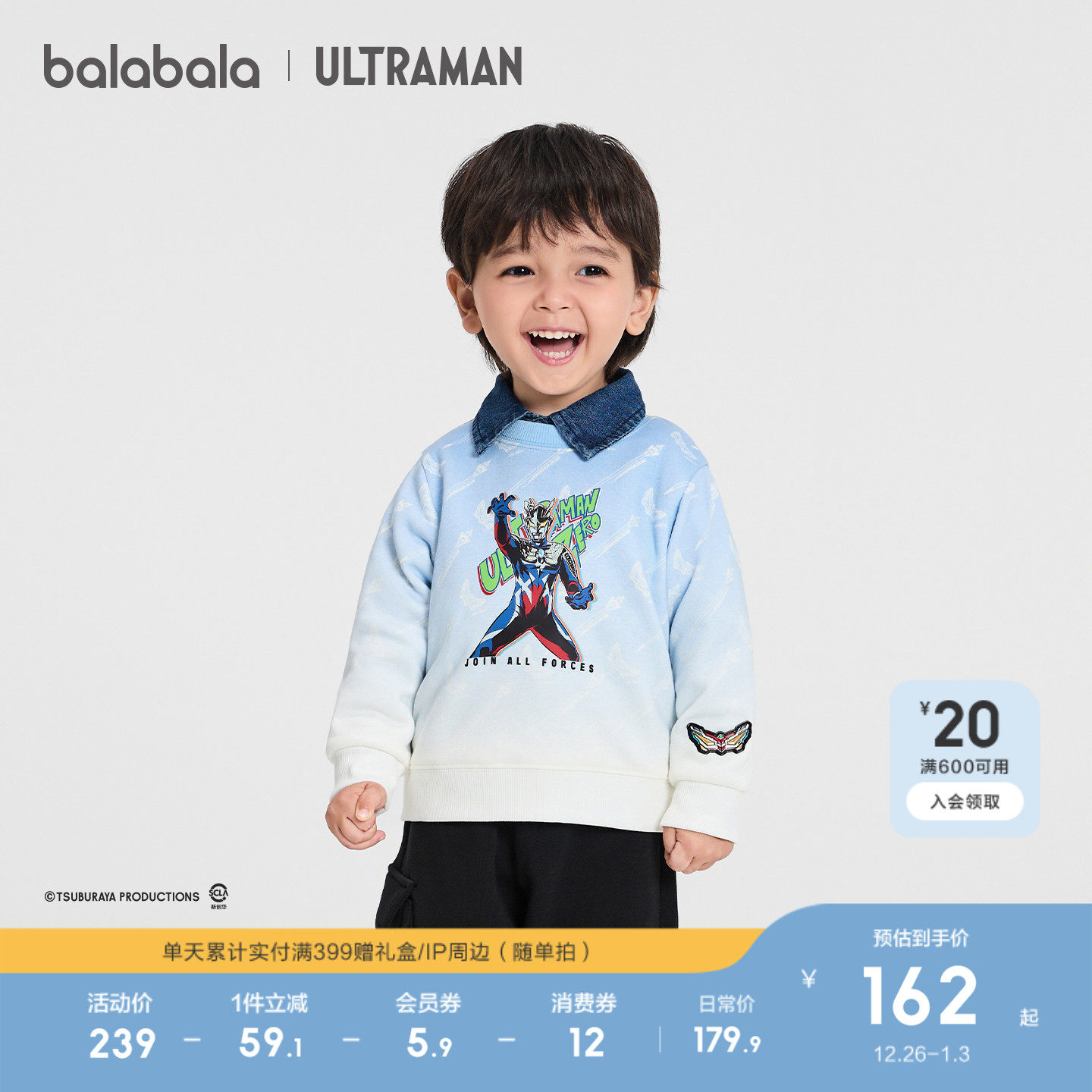 【奥特曼IP商场同款】巴拉巴拉童装男童卫衣儿童2025新款冬装加绒