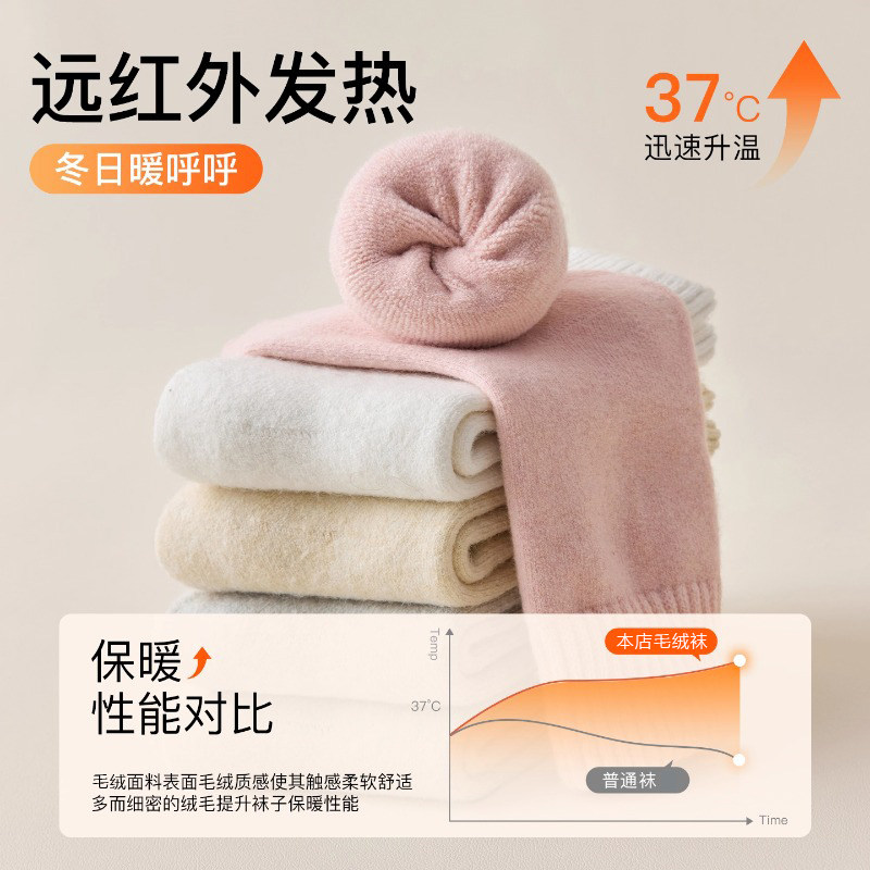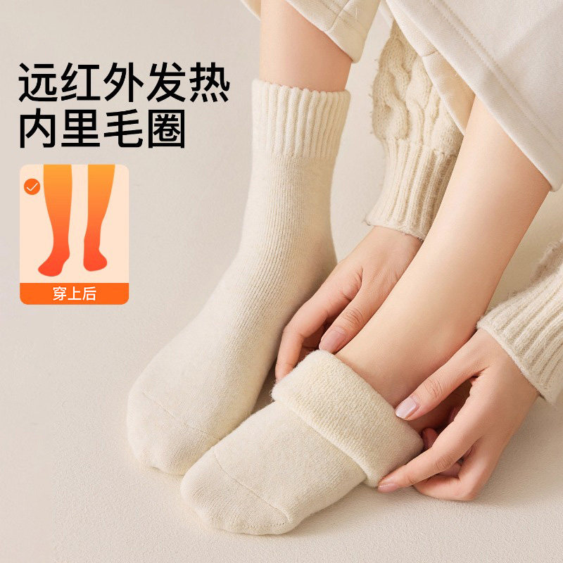 超厚羊毛袜子女秋冬季中筒袜加厚加绒保暖睡眠月子袜女士毛绒长袜