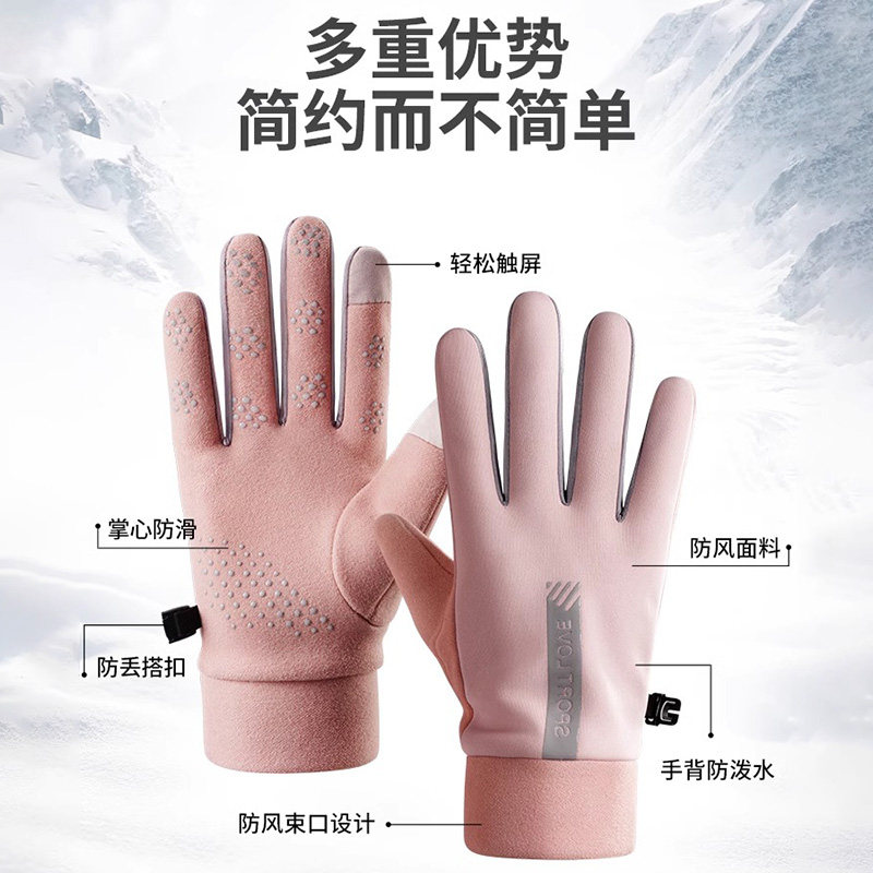 棉滑雪手套男女冬季防水触屏跑步运动骑行登山装备加绒厚保暖防风
