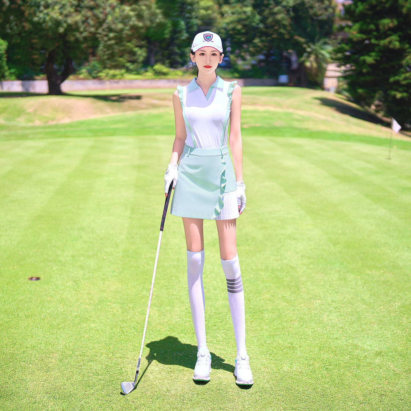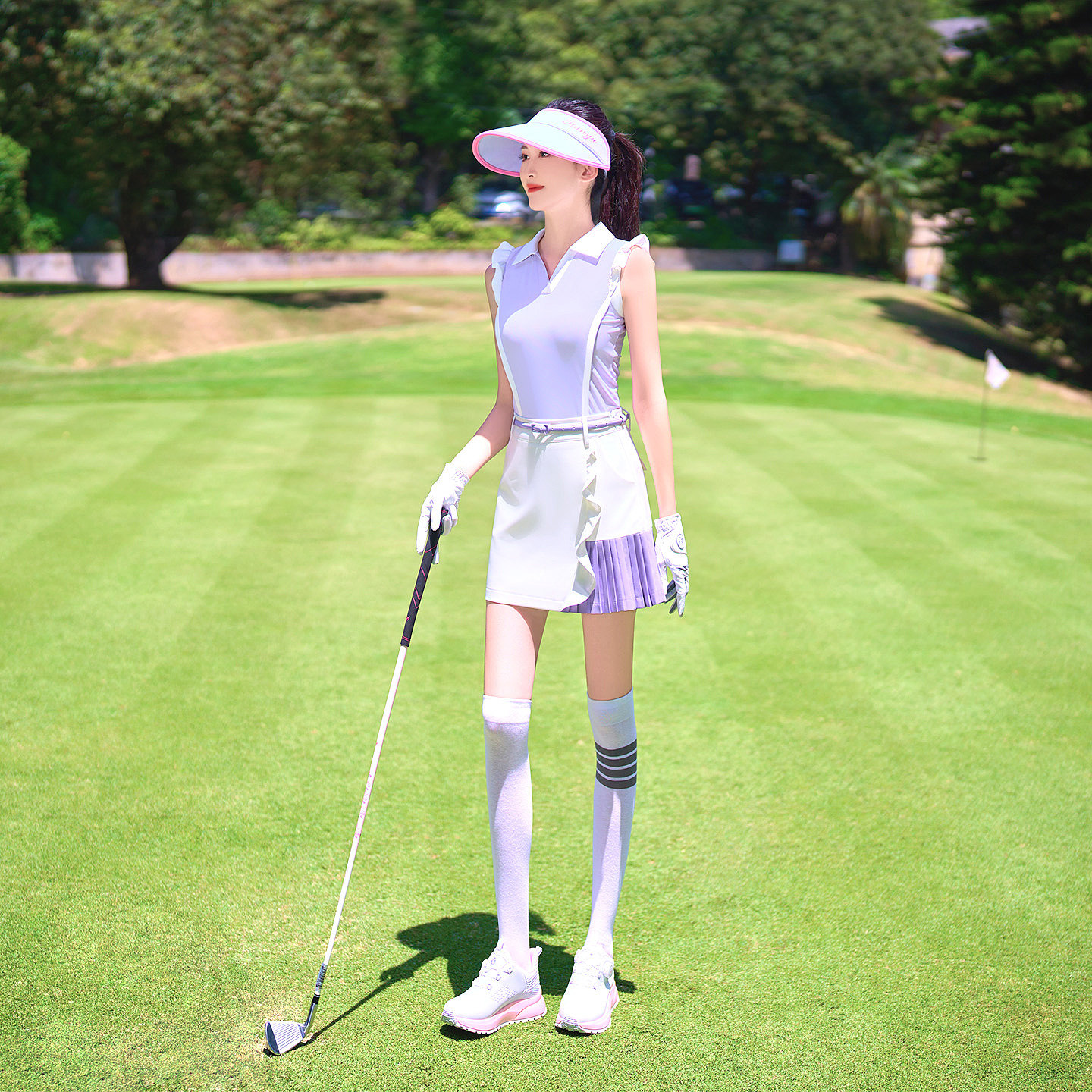 春夏新款高尔夫球女士无袖上衣速干修身显瘦运动T恤衫裤裙子套装