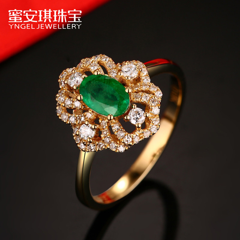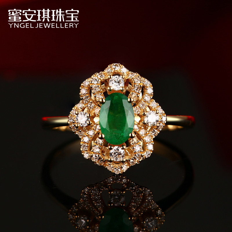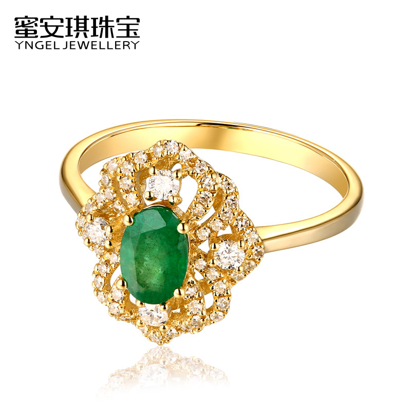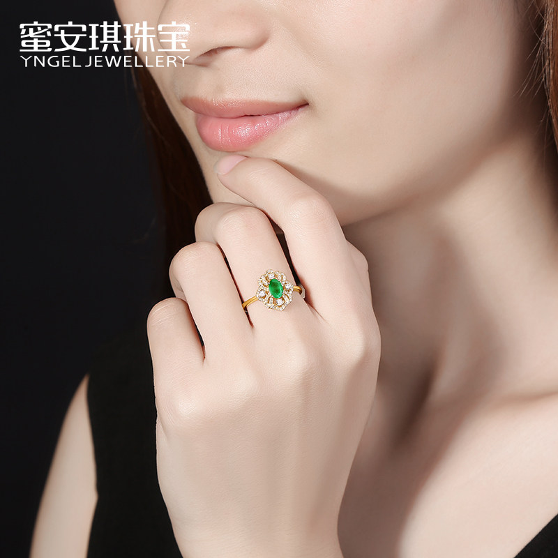 Yngel/蜜安琪0.43克拉天然祖母绿戒指22.3分钻18K金镶嵌彩宝定制