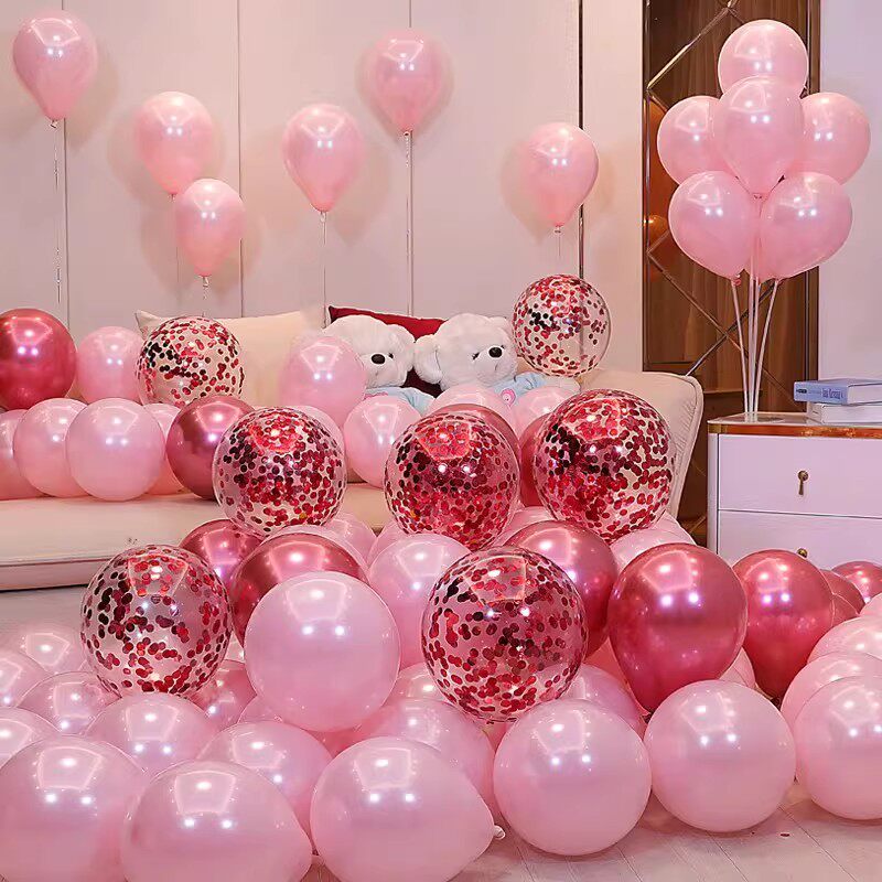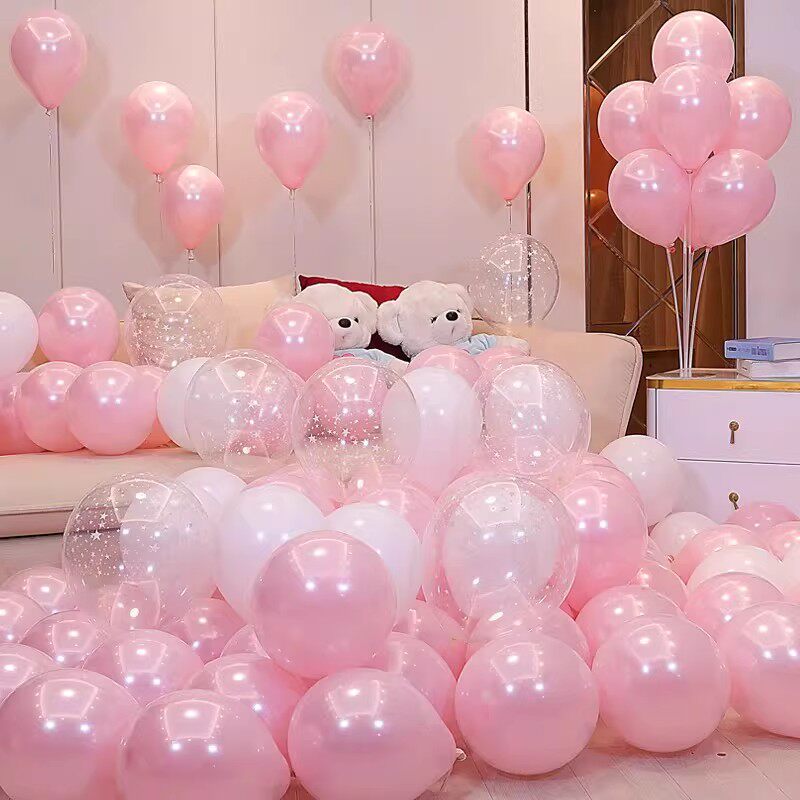 新年粉色珠光气球求婚订婚女孩儿童周岁生日派对装饰场景布置婚房