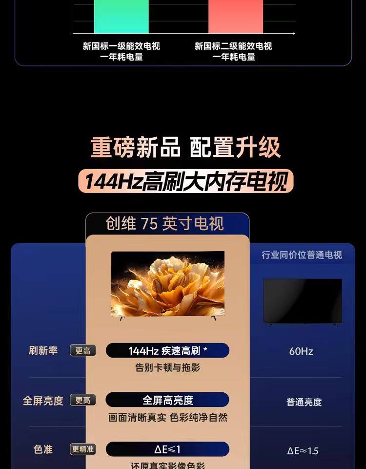 创维电视75 75英寸大内存144HZ高刷不卡顿 电视机以旧换新补贴