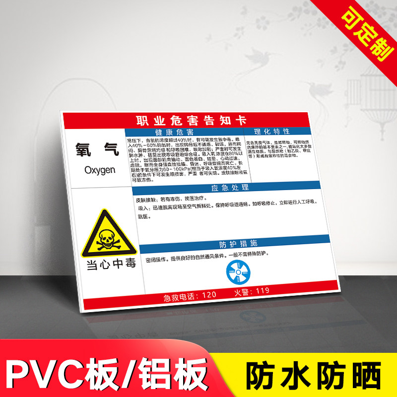 氧气职业危害告知卡 告知牌 提示牌 标识牌警示牌 牌子贴纸 职业病危害周知卡 周知牌 注意当心中毒