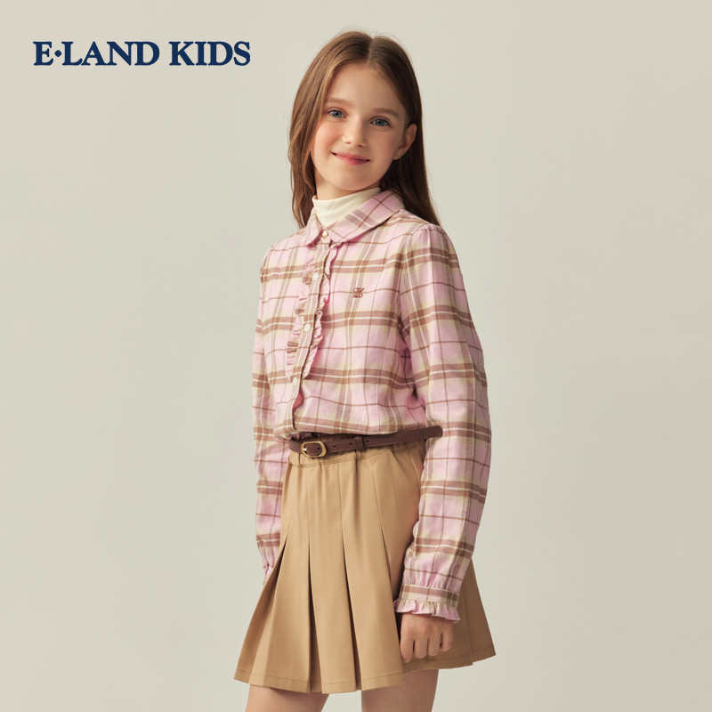 【100%棉】eland kids衣恋童装女童格纹衬衫2025年秋新品
