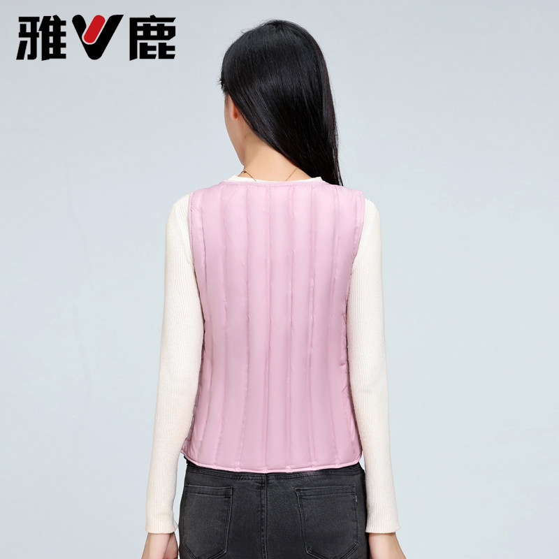 鸭鸭轻薄羽绒服马甲女V领反季基础修身背心休闲蓬松鸭绒马夹外套X