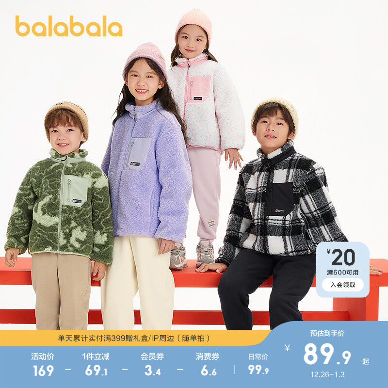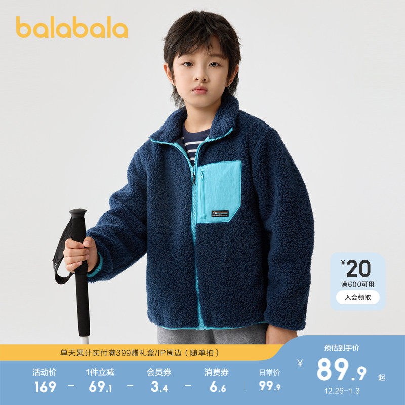 巴拉巴拉童装男童外套儿童秋冬装女童摇粒绒上衣拼接撞色亲子装