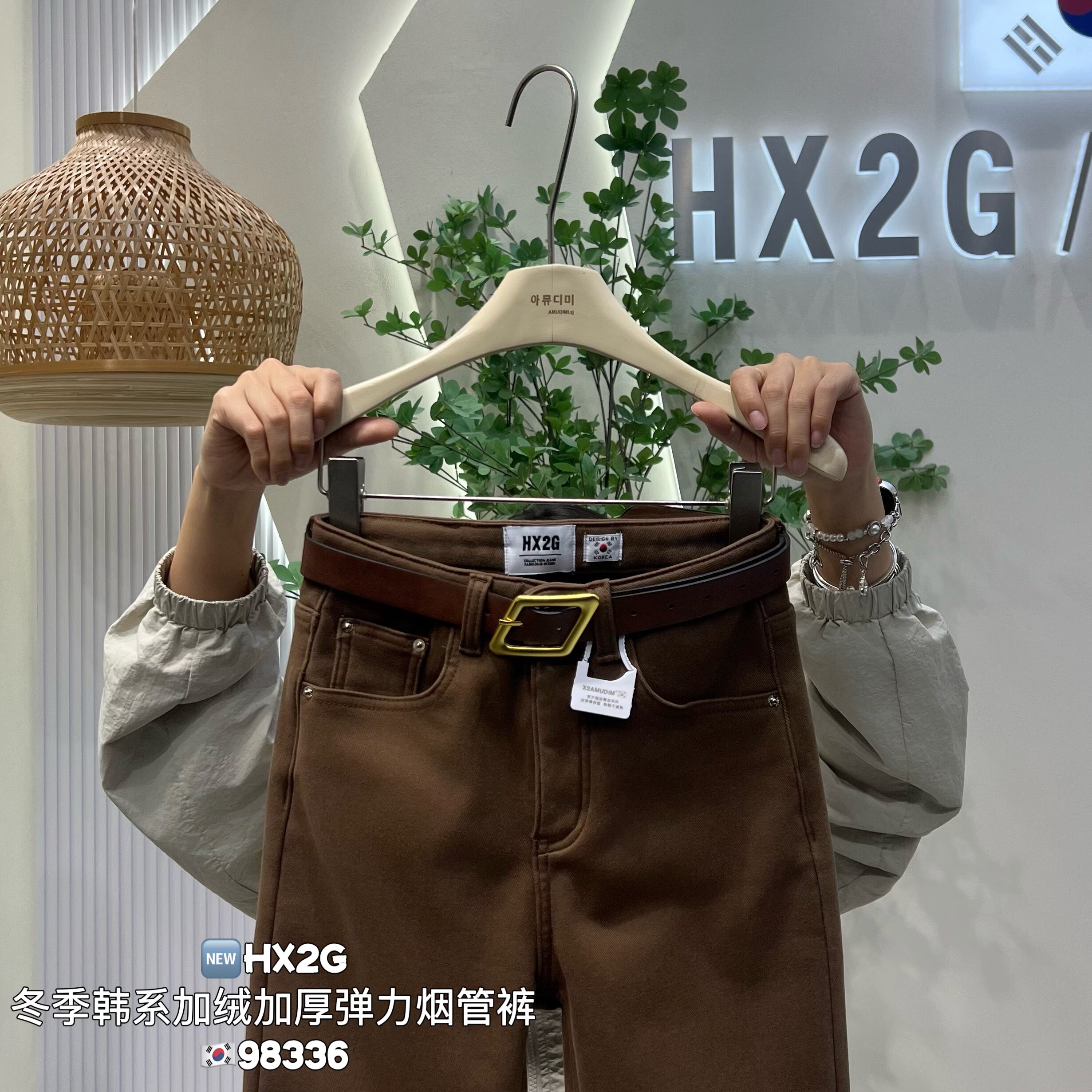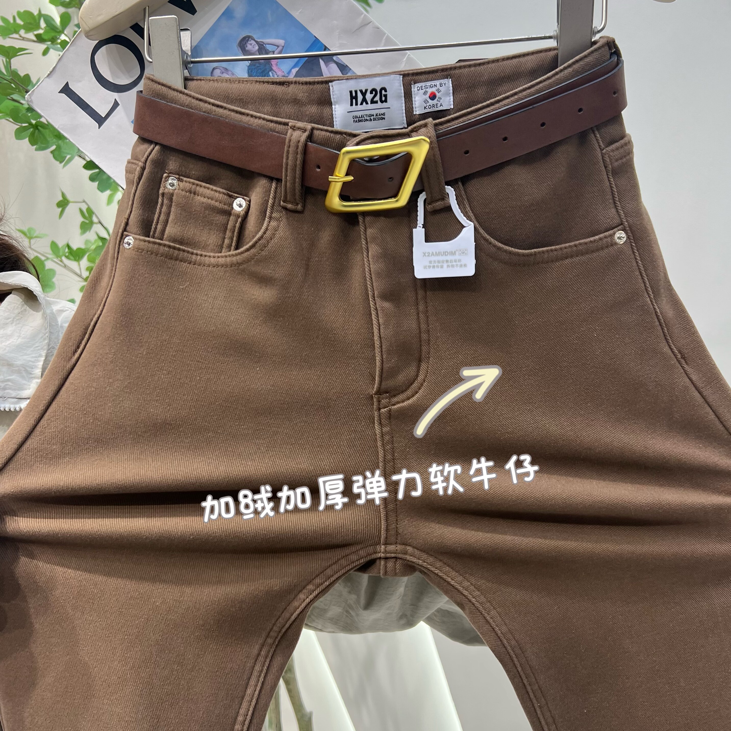 HX2G加绒加厚咖啡牛仔裤女2025冬新款修身显瘦高腰弹力直筒烟管裤