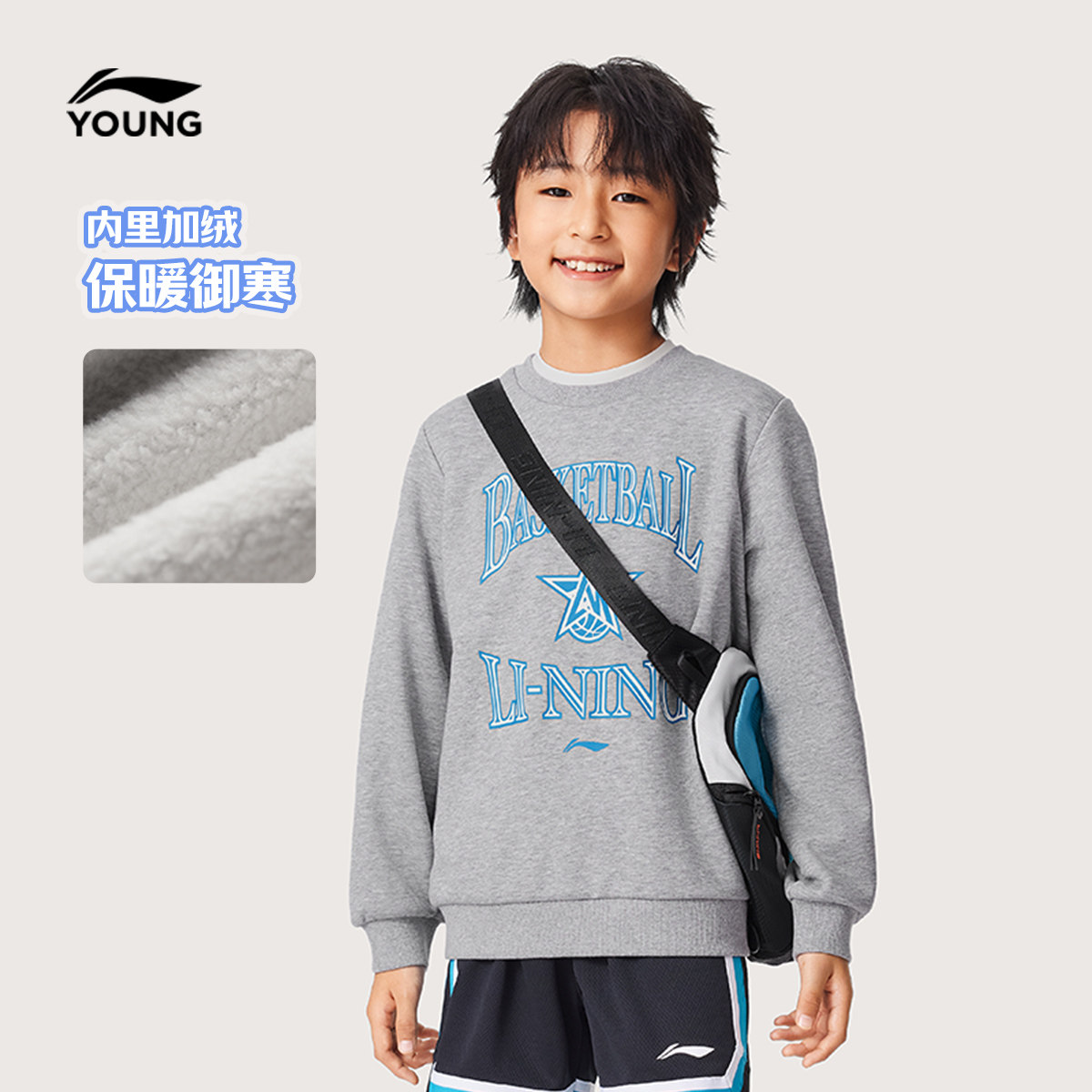 李宁儿童加绒抑菌卫衣男童装小大童青少年运动休闲百搭保暖上衣