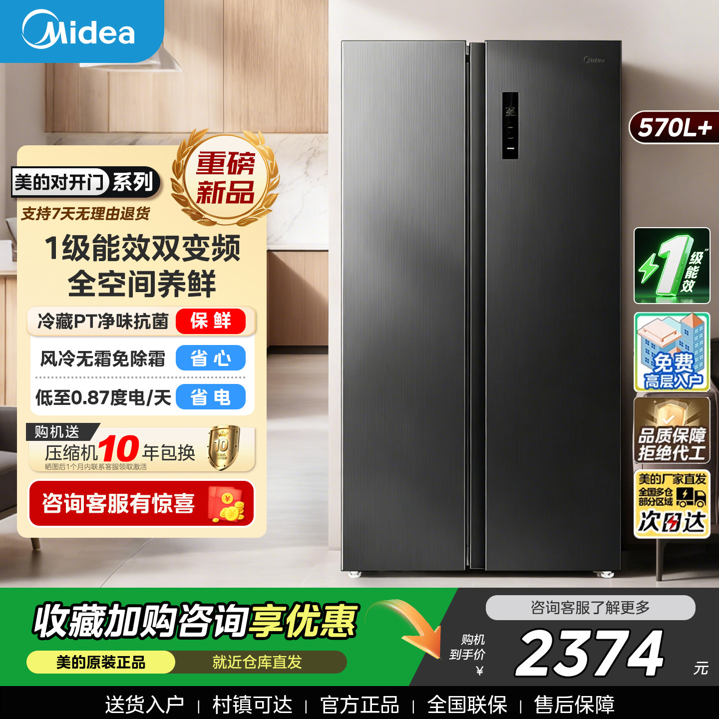 美的570+/606对开双开门两门大容量家用冰箱一级节能风冷无霜超薄
