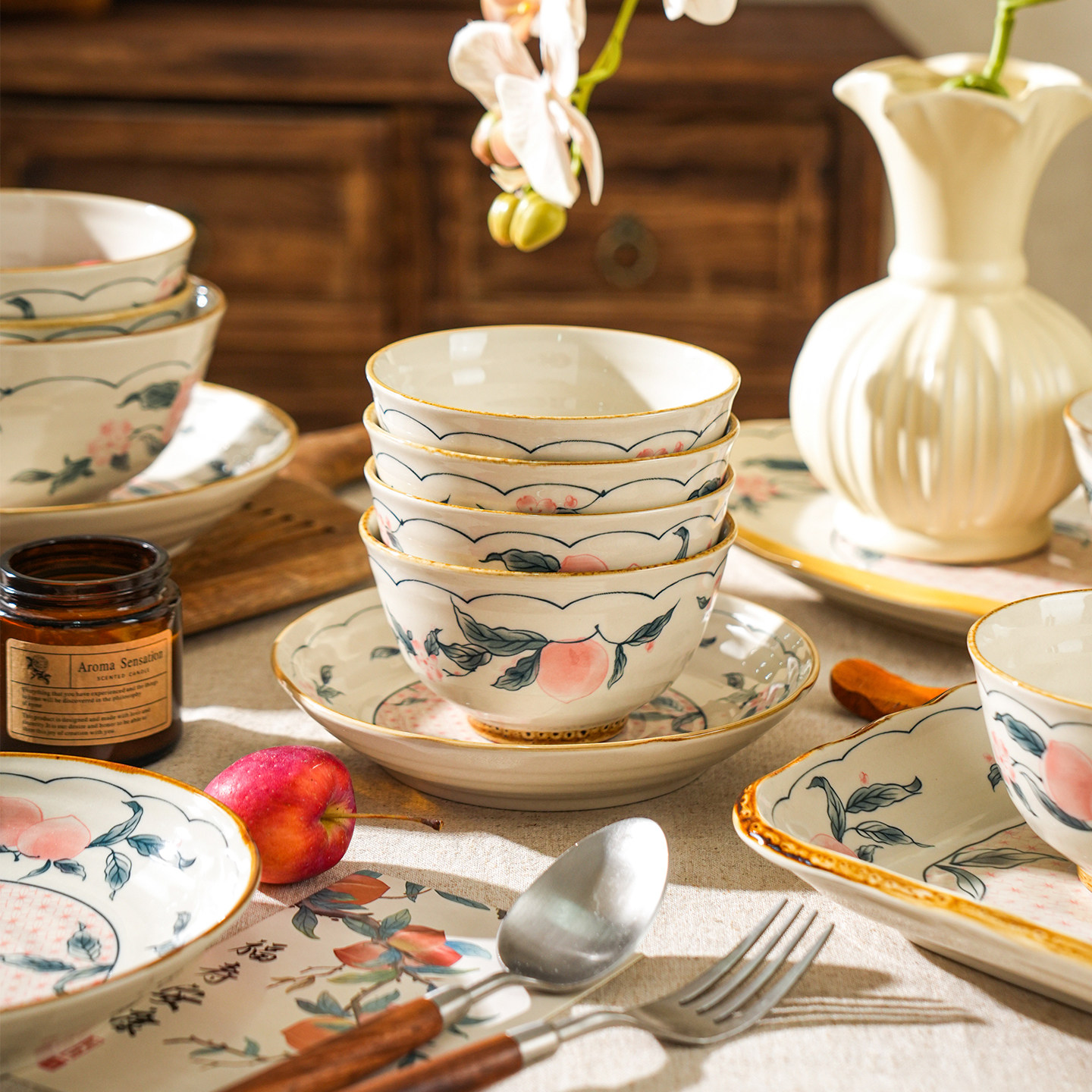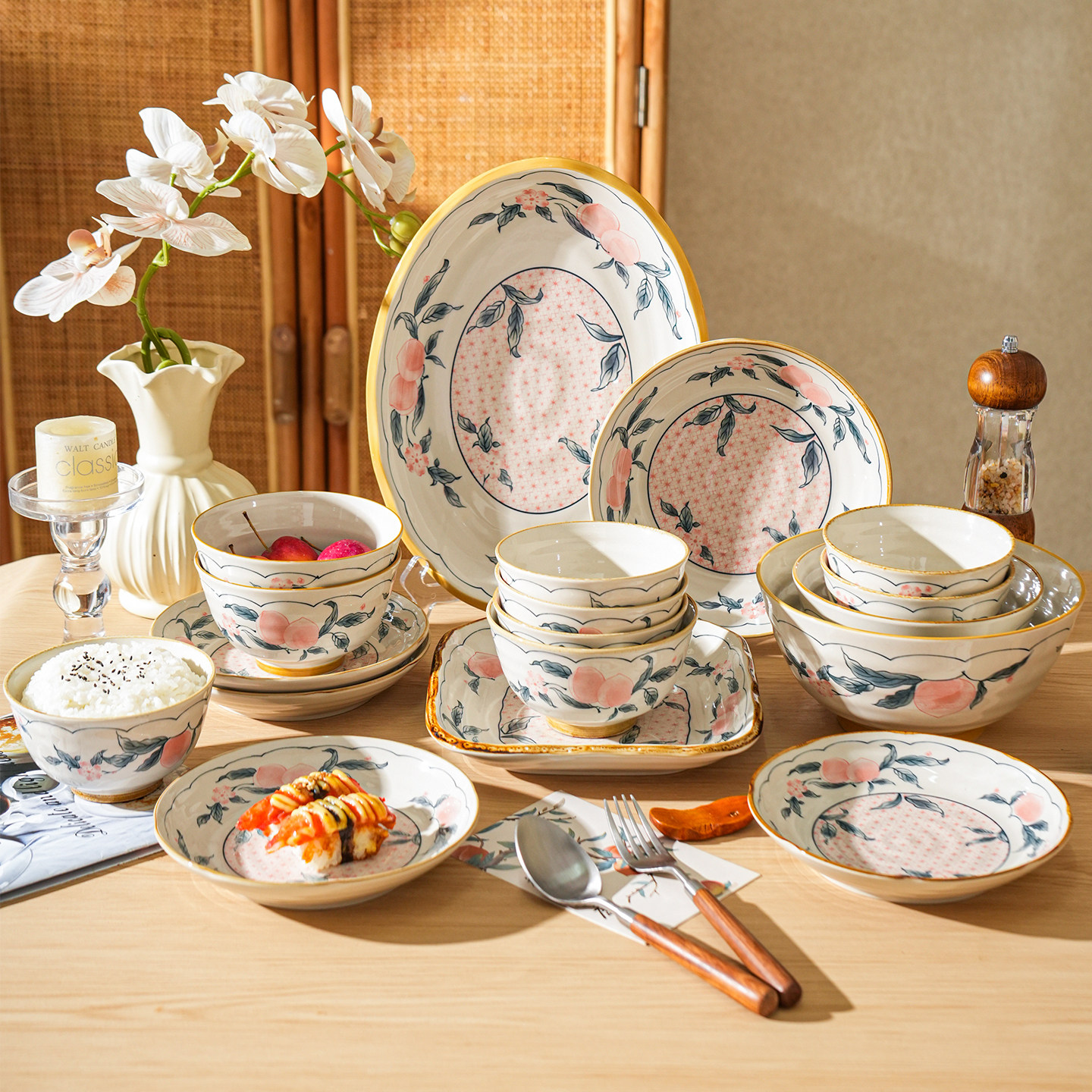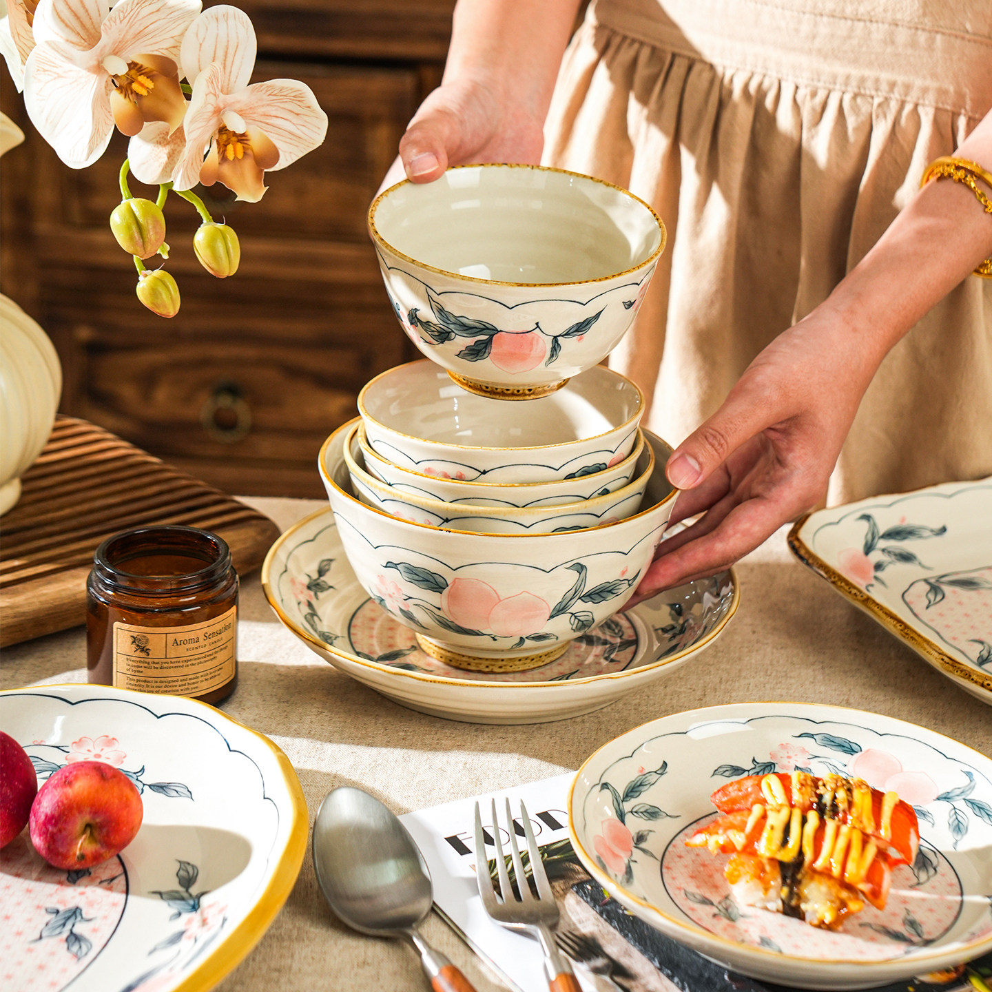 舍里釉下彩陶瓷碗碟套装家用高颜值餐具组合米饭碗汤碗菜盘鱼盘