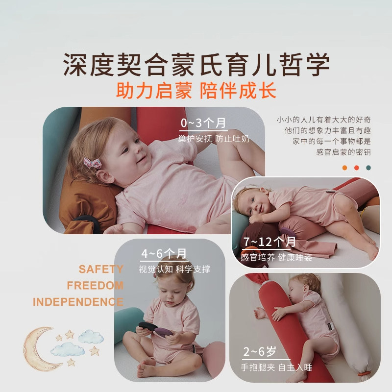 蒙氏婴儿枕多功能安抚抱枕宝宝睡觉长条枕糖果哄睡排气枕头儿童