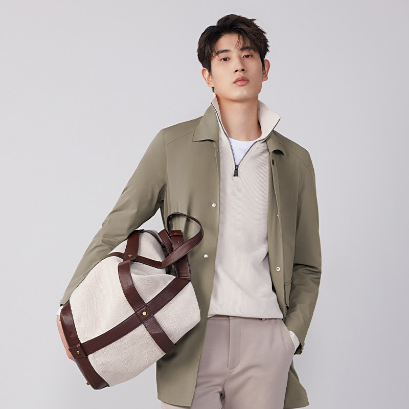 海上公路石纹肌理感风衣男士25年秋季中长款松弛休闲通勤廓形外套