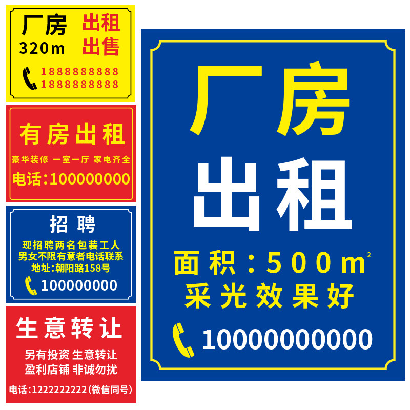夜光房屋出租招租厂房仓库招租旺铺转让标识牌招聘招工广告牌货车出租公寓有房出租提示牌海报发荧光贴纸定做